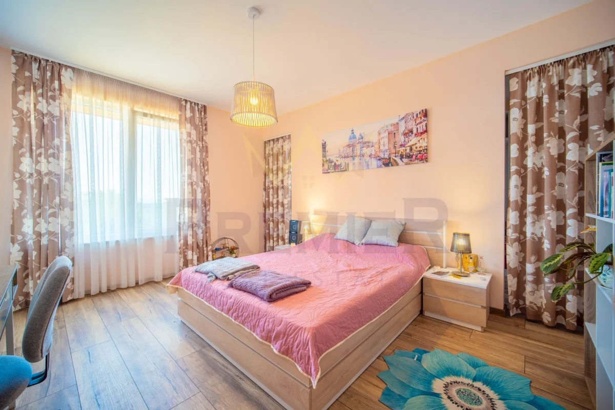 Върху разгъната застроена площ от 183 кв.м. са разпределени коридор, две светли спални – една от които с дрешник , всекидневна с кухня , два санитарни възела, килер, веранда с барбекю зона. Има възможност за трета спалня! Предлага се напълно оборудвана и обзаведена с всичко необходимо за едно домакинство. Отоплението на къщата се осъществява чрез климатик и камина с въздухопроводи.