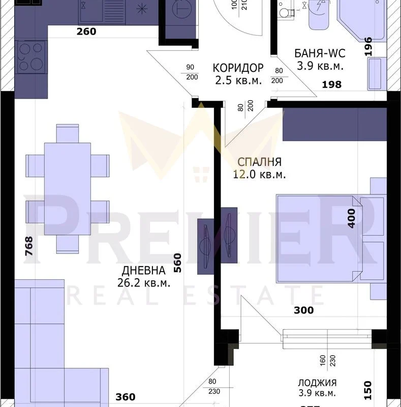 - просторна дневна с кухня – 26 кв.м