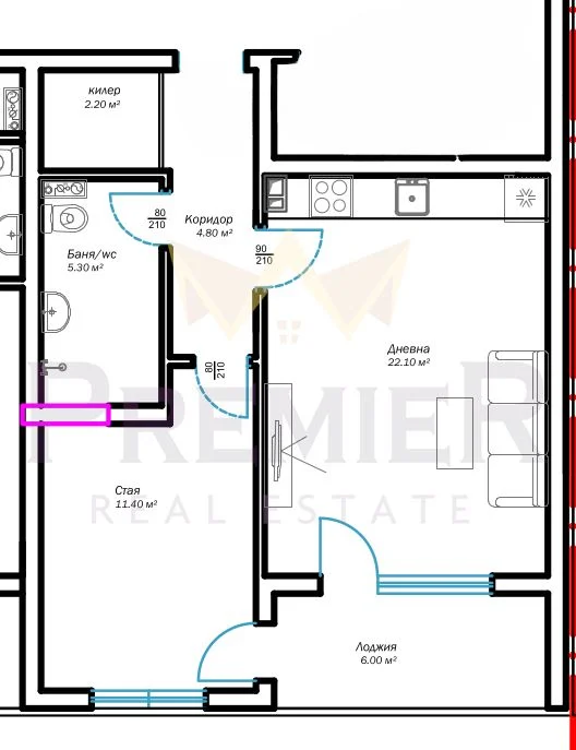 Имоти Премиер предлага на Вашето внимание уютен и стилен двустаен апартамент, разположен на първи висок етаж в нова модерна сграда с района на м-т Пчелина, гр.Варна. Жилището има следното функционално разпределние.: входно антре, баня с тоалет, просторна всекидневна с кухненски бокс – оборудвана с всичко необходимо за едно домакинство и общ балкон /лоджия/.