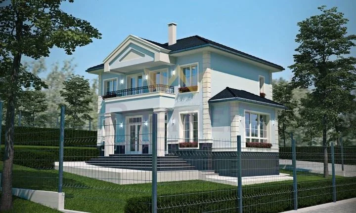 - Втори етаж (70 кв.м): коридор, 2 спални (едната със собствена баня, тоалетна и гардеробна), втора баня с тоалетна, балкон