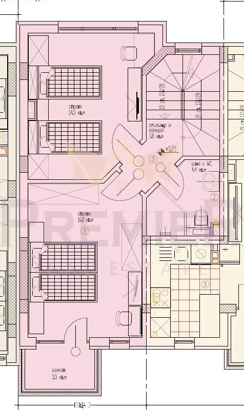 - ВТОРИ ЕТАЖ – вътрешен коридор, две хубави спални едната от които със собствен балкон, голяма баня с тоалет за етажа