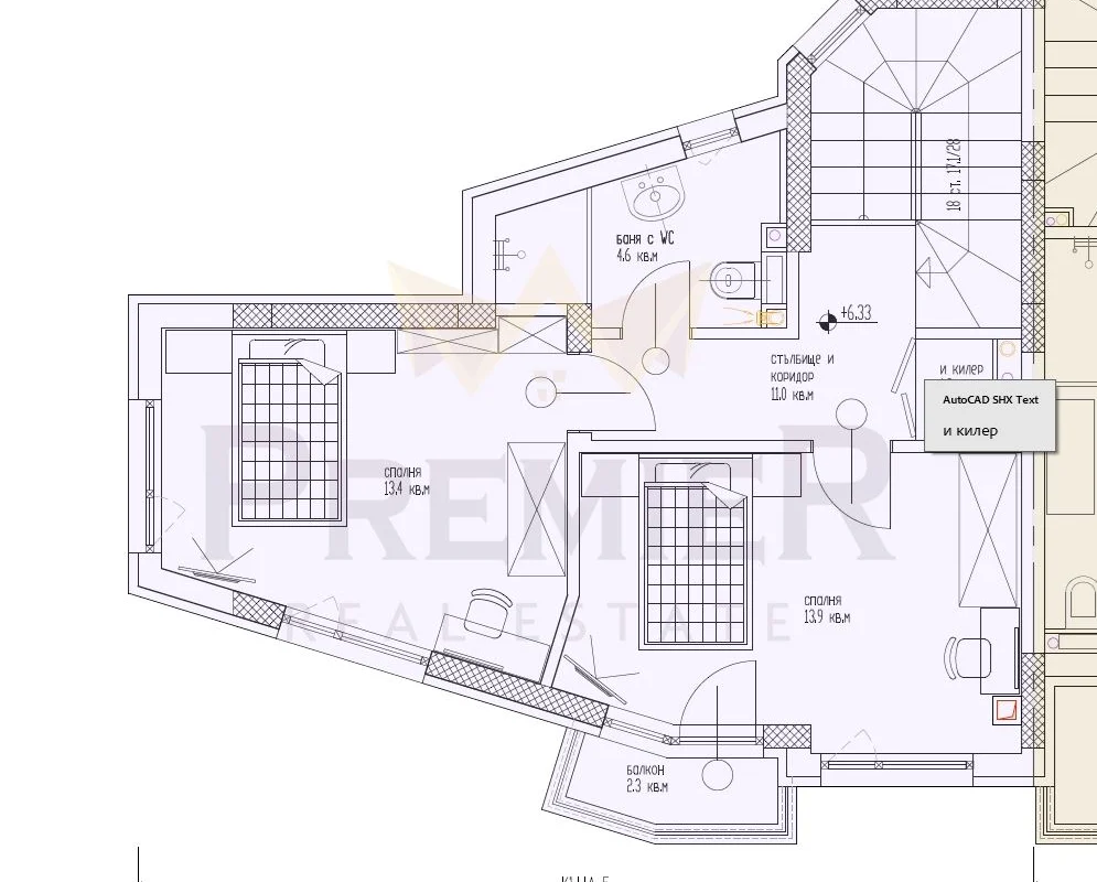 - ВТОРИ ЕТАЖ – вътрешен коридор, перално/килер, две хубави спални, едната от които със собствен дрешник и балкон, голяма баня с тоалет за етажа