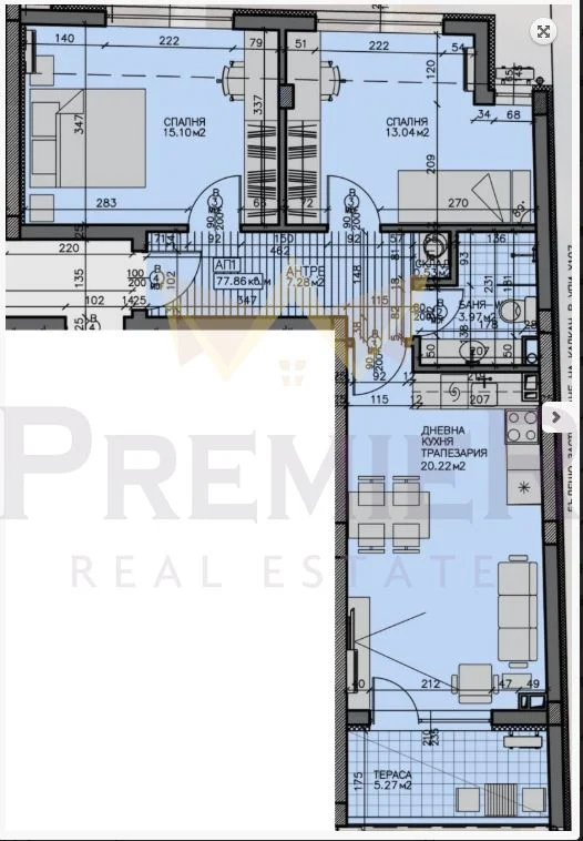 - Две големи спални едната 15 кв.м другата 13 кв.м и всекидневна 21 кв.м