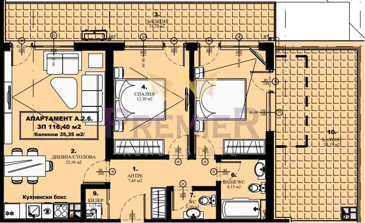 3 595 лв./м2 - 136 м2 3-стаен