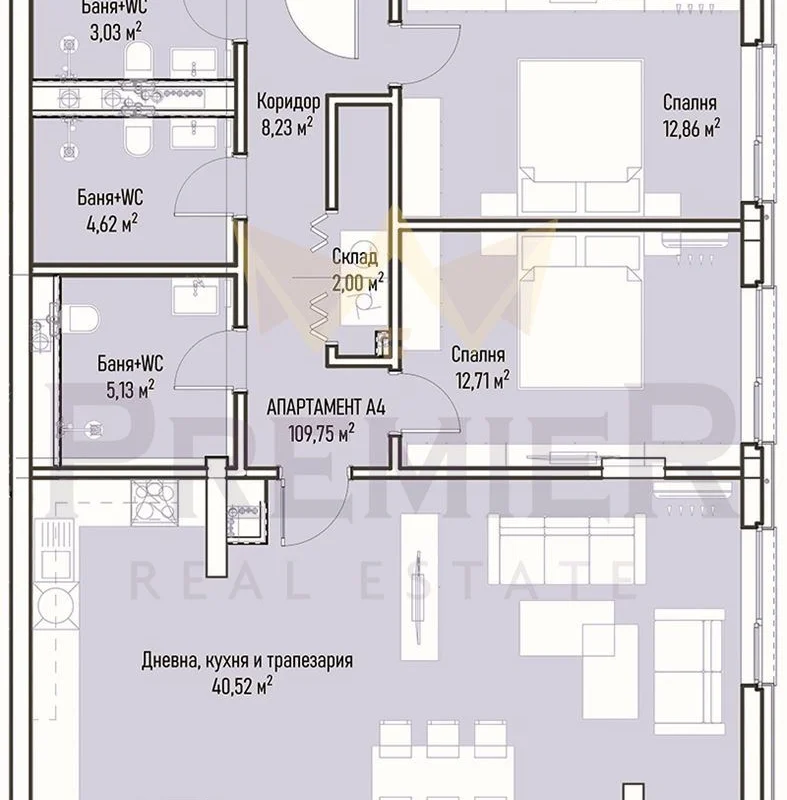 3 832 лв./м2 - 136 м2 3-стаен