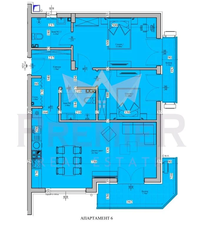 Тристаен апартамент с площ 110 кв.м.