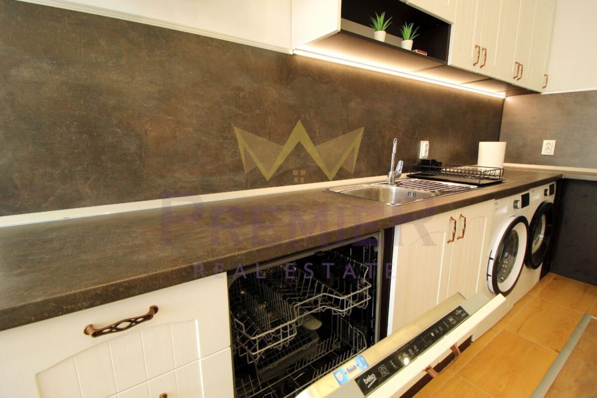 Апартаментът е напълно обзаведен и оборудван, готов за нанасяне веднага. Отличава се с удобното си разпределение и допълнителните екстри, които създават уютна и практична среда за живеене.