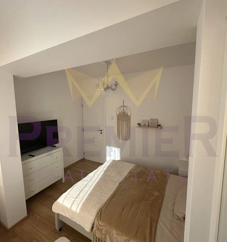 - Спалня: Уютната спалня е обзаведена с комфортно легло и гардероб, осигуряващи достатъчно пространство за съхранение на лични вещи. Спалнята също разполага с телевизор Samsung, който добавя допълнително удобство.