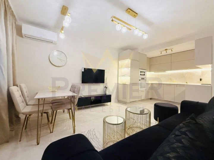 Имотът е за първи наемател и се предлага във вида от снимките, с луксозно обзавеждане и висок клас удобства. Включва и охраняемо паркомясто, което осигурява допълнителен комфорт и спокойствие. В близост ще откриете магазини, ресторанти и заведения.