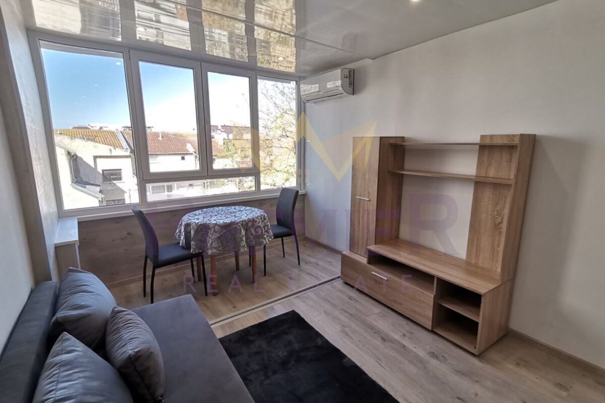 Имоти Премиер представя на вашето внимание напълно обзаведен двустаен апартамент находящ се в непосредствена близост до Площад Лаврентий в района на Широк център. В близост до Филиала на ОУ „К. Арабаджиев“, колхозен пазар, магазини, на 5 минути пешеходно разстояние от Катедрала и центъра. Жилището е след основен ремонт и се състои от входно антре, кухненски бокс с дневен тракт, спланя с тераса, баня с тоалетна. Напълно обзаведен и оборудван с всичко необходимо за едно домакинство. За повече информация позвънете на посочените телефони и цитирайте код на обявата: 1340