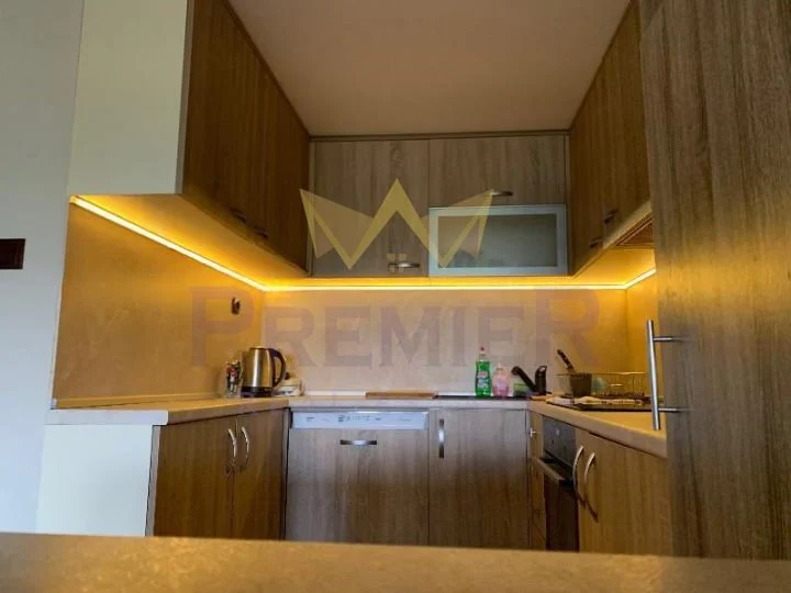 - Дневен тракт с кухненски бокс: Просторен и светъл дневен тракт, съчетаващ хол и кухненски бокс в едно отворено пространство. Кухнята е напълно оборудвана с висок клас електроуреди, включително вградена фурна, керамични котлони, аспиратор, миялна машина и хладилник. Тази част от апартамента е идеална за събирания и спокойни вечери. Големите прозорци осигуряват естествена светлина през целия ден.