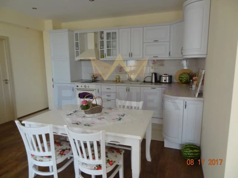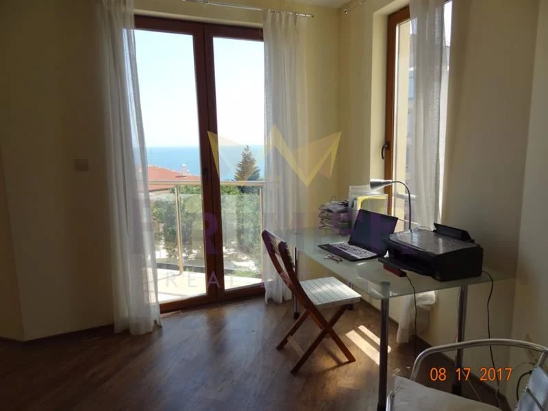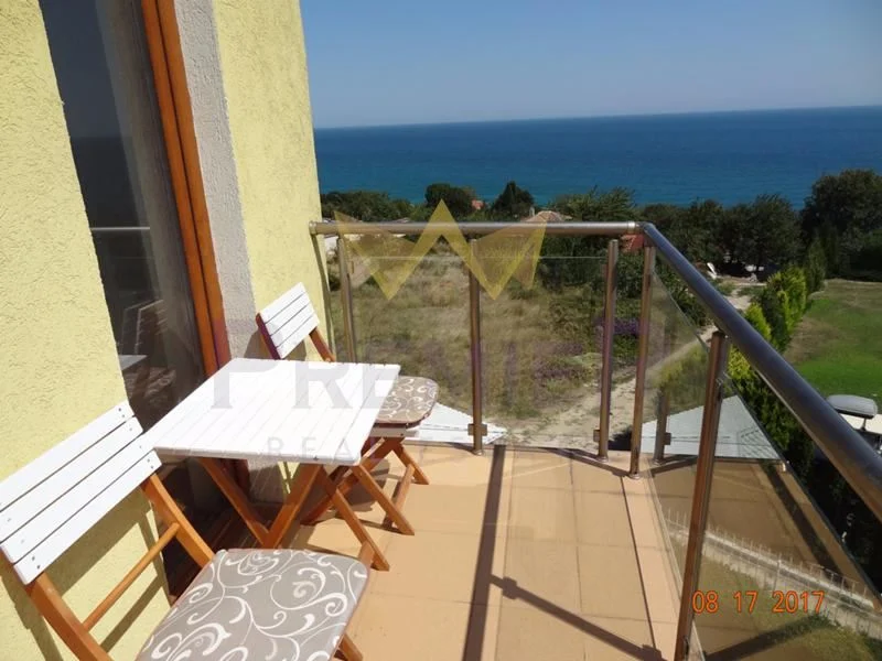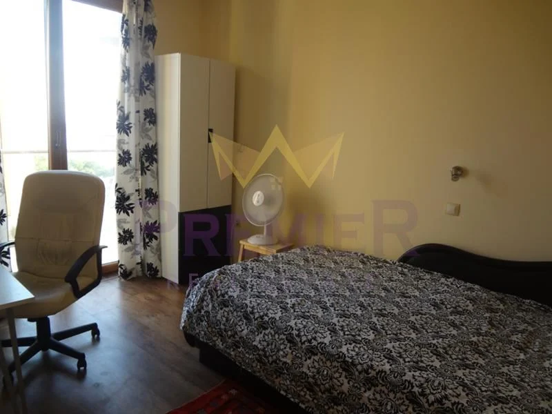 Имоти Премиер отдава под наем просторен панорамен апартамент в тих и спокоен район. Обзаведен напълно с нови мебели и електроуреди. В двора има добре поддържан басейн /сезонно/ и беседка с барбекю – отново с изглед към морето. Състои се от дневен тракт с кухненски бокс, 2 спални, санитерен възел. Код на обявата 23120