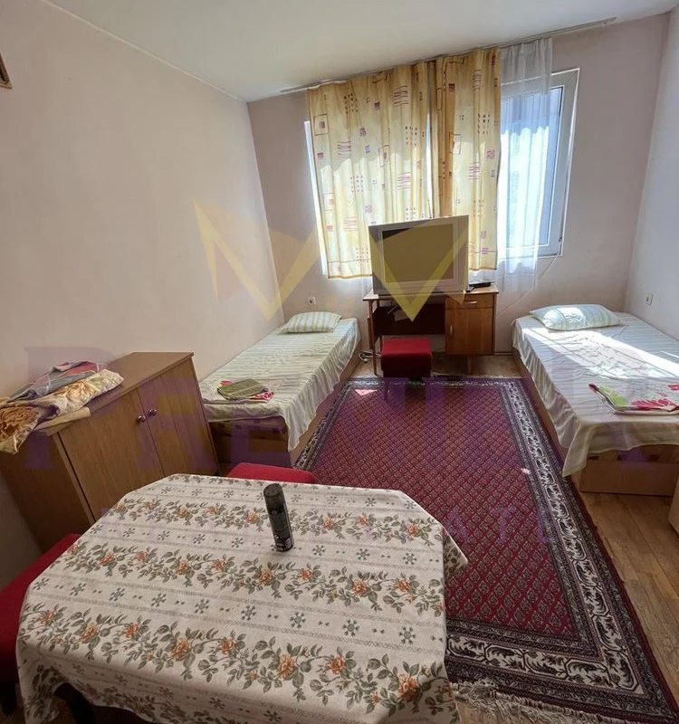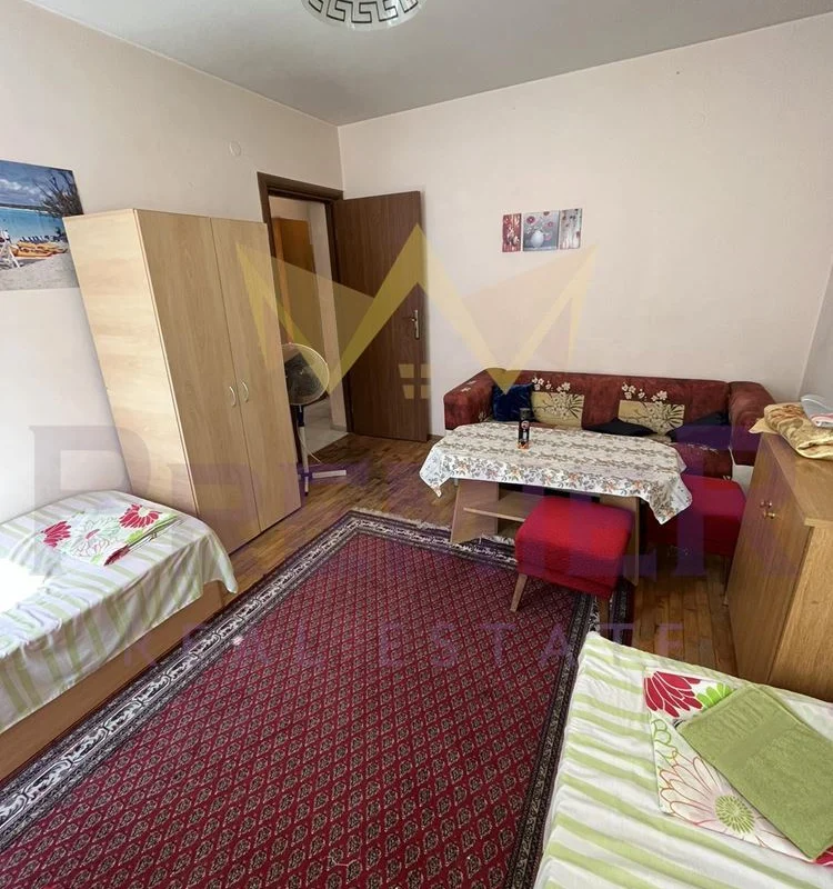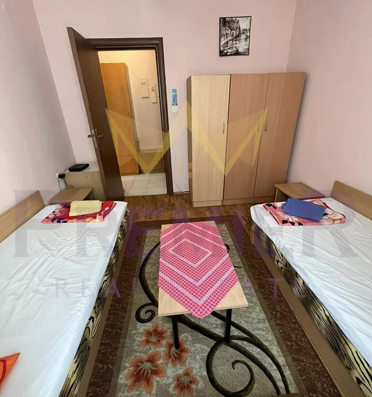 ИМОТИ ПРЕМИЕР отдава под наем Тристаен апартамент в района на Окръжна Болница, град Варна. В близост се намират Дентален Университет, магазин Лидъл, АГ Болница , както и много магазини, заведения, ресторанти, детски градини, училища. Жилището е със следното разпределение: три самостоятелни стаи, две спални и кухня с трапезария с тераса. Кухненският бокс е оборудван с печка, хладилник, пералня. Спалните са всяка с по две единични легла, гардероб, холна маса. Банята и тоалетната са в едно помещение. тЕРАСА Напълно обзаведен и оборудван. За повече информация позвънете на посочените телефони и цитирайте код на обявата: 7182