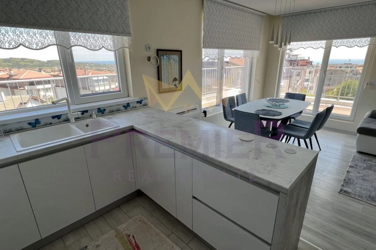 ИМОТИ ПРЕМИЕР Ви предлага ТРИСТАЕН АПАРТАМЕНТ с гледка към морето в кв. Виница. В тухлена нова сграда! С голяма панорамна тераса! Апартамента е със следното разпределение: входно антре, кухня с голяма трапезария от която се открива прекрасна панорама към морето, две спални, баня и тоалетна, голяма тераса. Напълно обзаведен. Огледи по всяко време!!! ДВЕ ПАРКОМЕСТА В ЦЕНАТА! За повече информация позвънете на посочените телефони и цитирайте код на обява: 346791