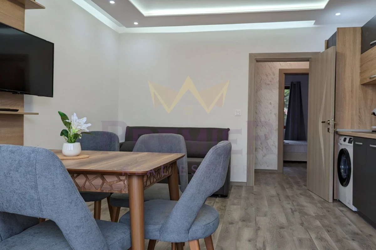 Влизайки в апартамента, ще бъдете впечатлени от просторната и светла всекидневна, която е напълно обзаведена. Пространството е много функционално и се отличава с уникален архитектурен дизайн, придаващ усещане за модерност и стил.