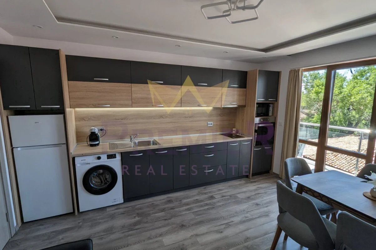 Кухнята е със съвременен дизайн и е напълно оборудвана с всички необходими електроуреди. Има достатъчно място за приготвяне на вкусни ястия и достъп до балкона, където можете да насладите семейството си на обед или вечеря, докато се наслаждавате на прекрасната гледка.