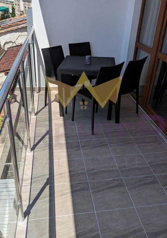 Балконът на апартамента също предлага привлекателното морско изживяване, като ви дава възможност да се насладите на топлите летни вечери или да се релаксирате с кафе по всяко време на деня.