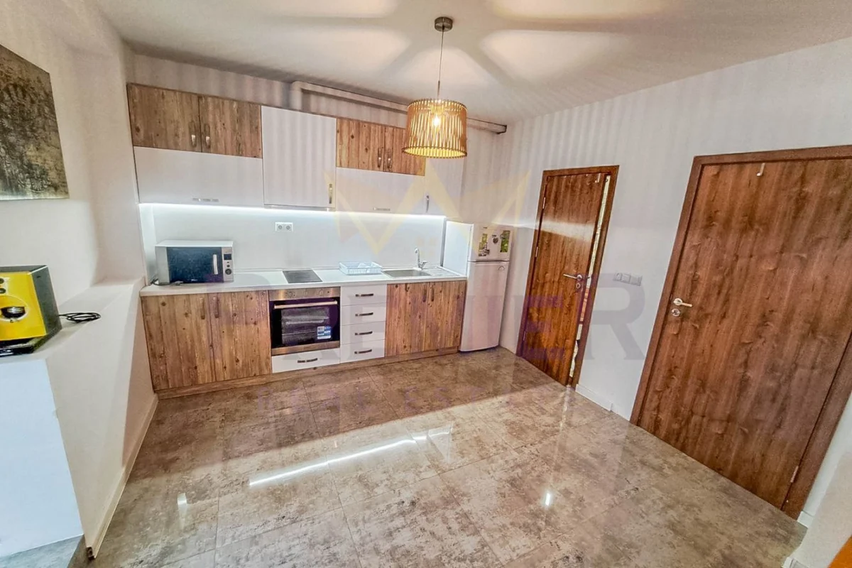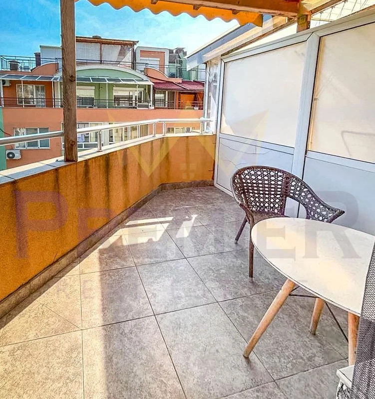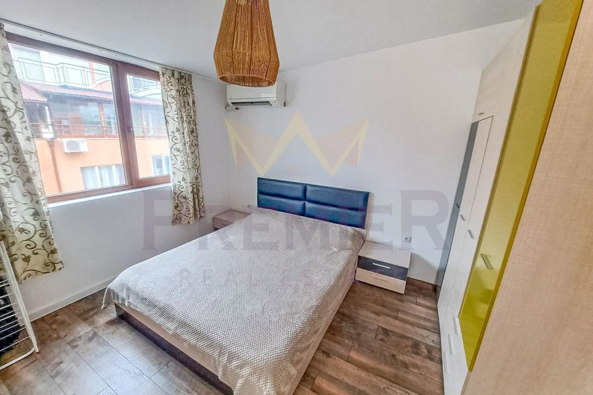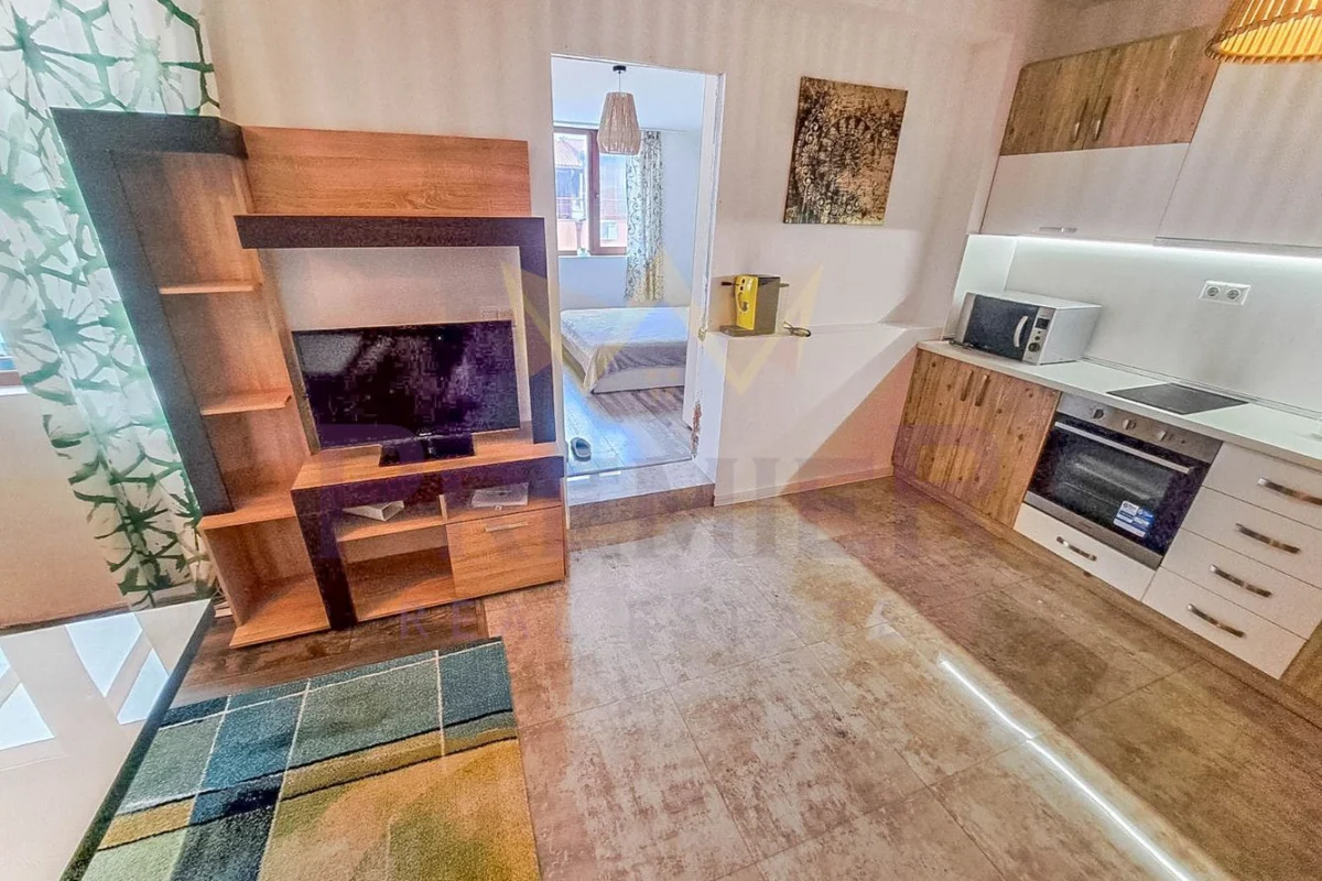 Имотът е с обща площ 113 кв.м., разпределен функционално на двустаен апартамент и студио. Намира се в сграда от 2009 г., на 5-ти (среден) етаж.
