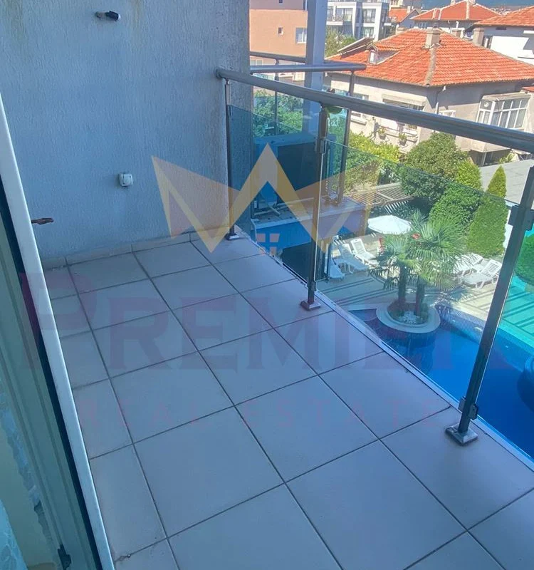 Състоящ се от антре, просторна дневна, трапезария с кухненски бокс, уютна спалня, баня с тоалетна и тераса . Апартаментът е напълно обзаведен; мебели, хладилник, телевизор, климатик. Има възможност за целогодишно живеене. Пред сградата има места за паркиране, на територията на комплекса има 2 открити басейна, фитнес, бар, ресторант, детски кът, телевизия, Wi-fi