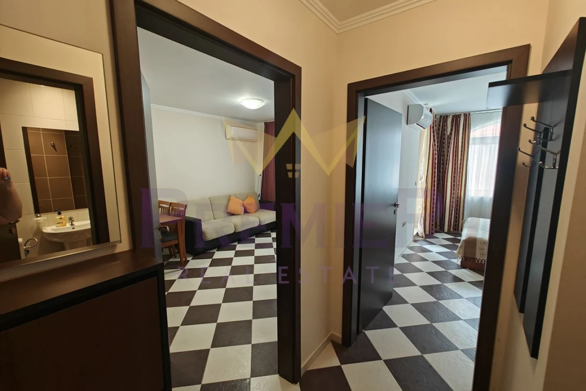 ИМОТИ ПРЕМИЕР предлага за продажба двустаен апартамент в гр. Созопол, разположен в поддържан комплекс с басейн.