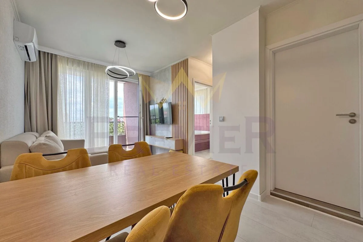 Имоти Премиер с удоволствие ви представя изключителен двустаен апартамент с модерна визия и ключова локация в курортния комплекс Слънчев бряг, Бургас. ?