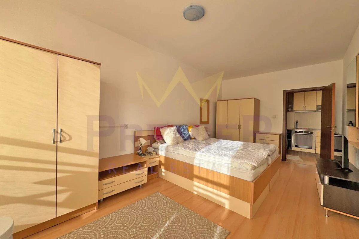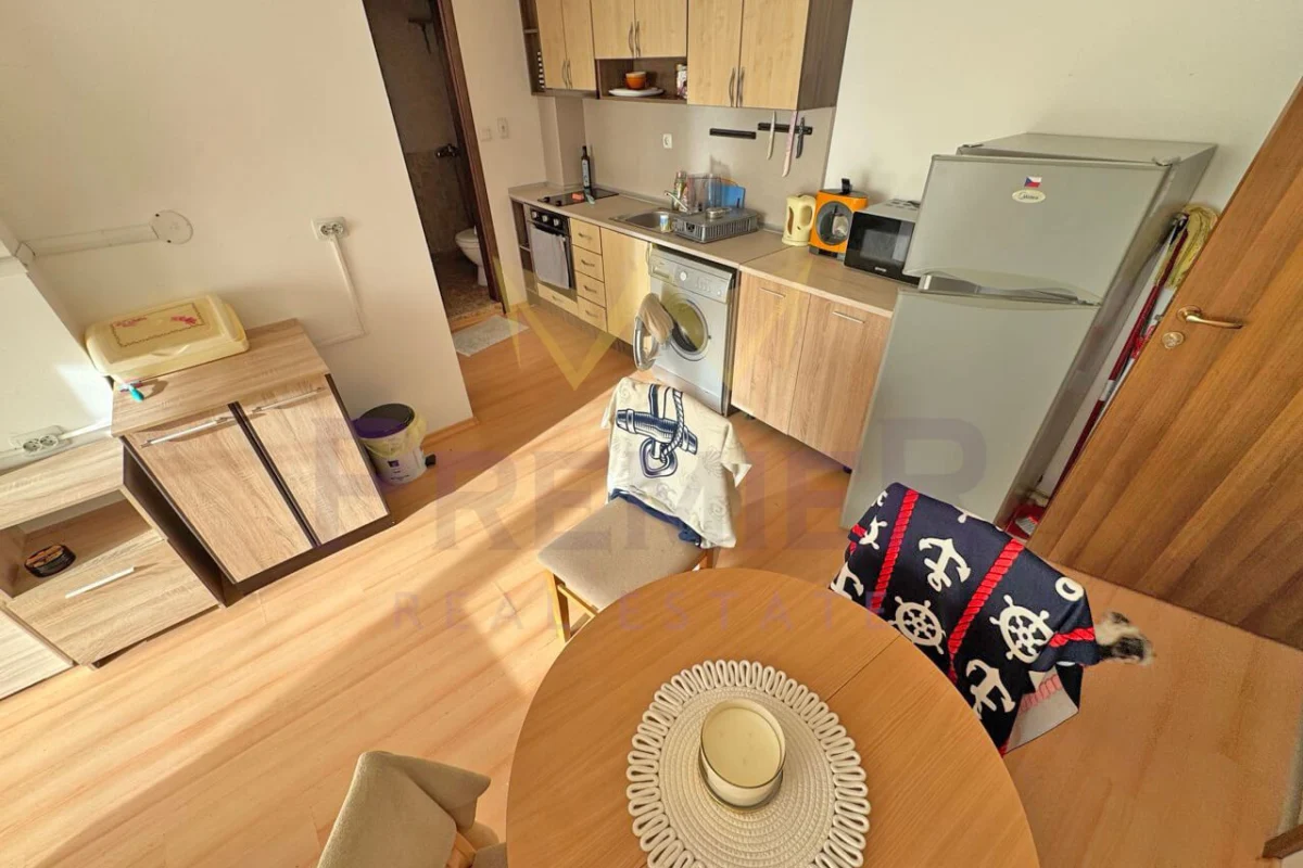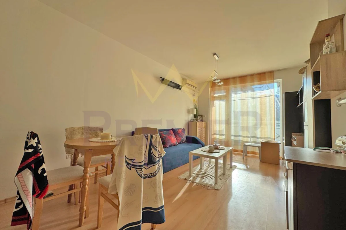 Имоти Премиер ви представя стилен двустаен апартамент с отлична локация в к.к. Слънчев бряг, гр. Бургас