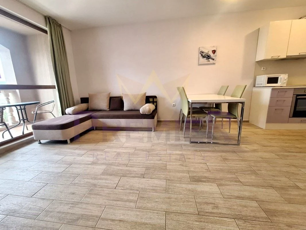 Имоти Премиер има удоволствието да ви представи стилен 2-стаен апартамент с отлична локация в к.к. Слънчев бряг, област Бургас