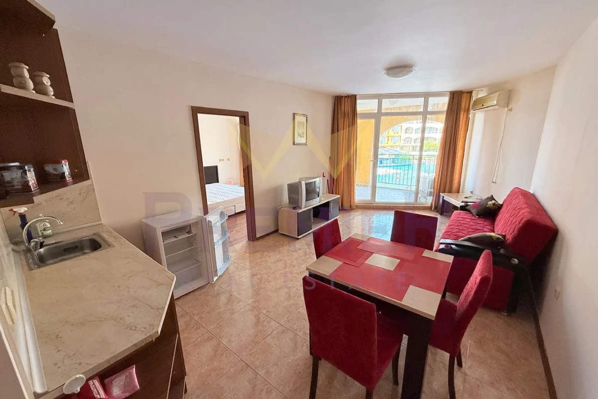 Обзаведен двустаен апартамент с панорама море на първа линия в к-с „Мидия Фемили Резорт“, Ахелой