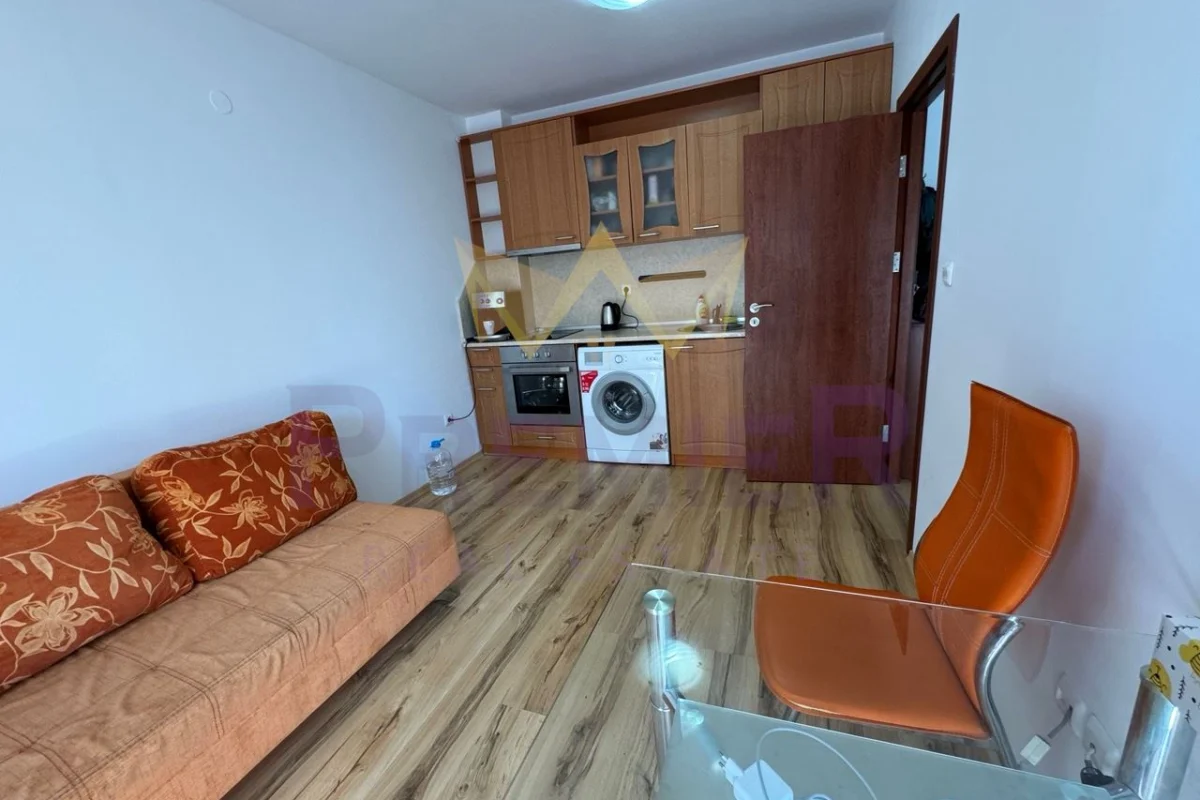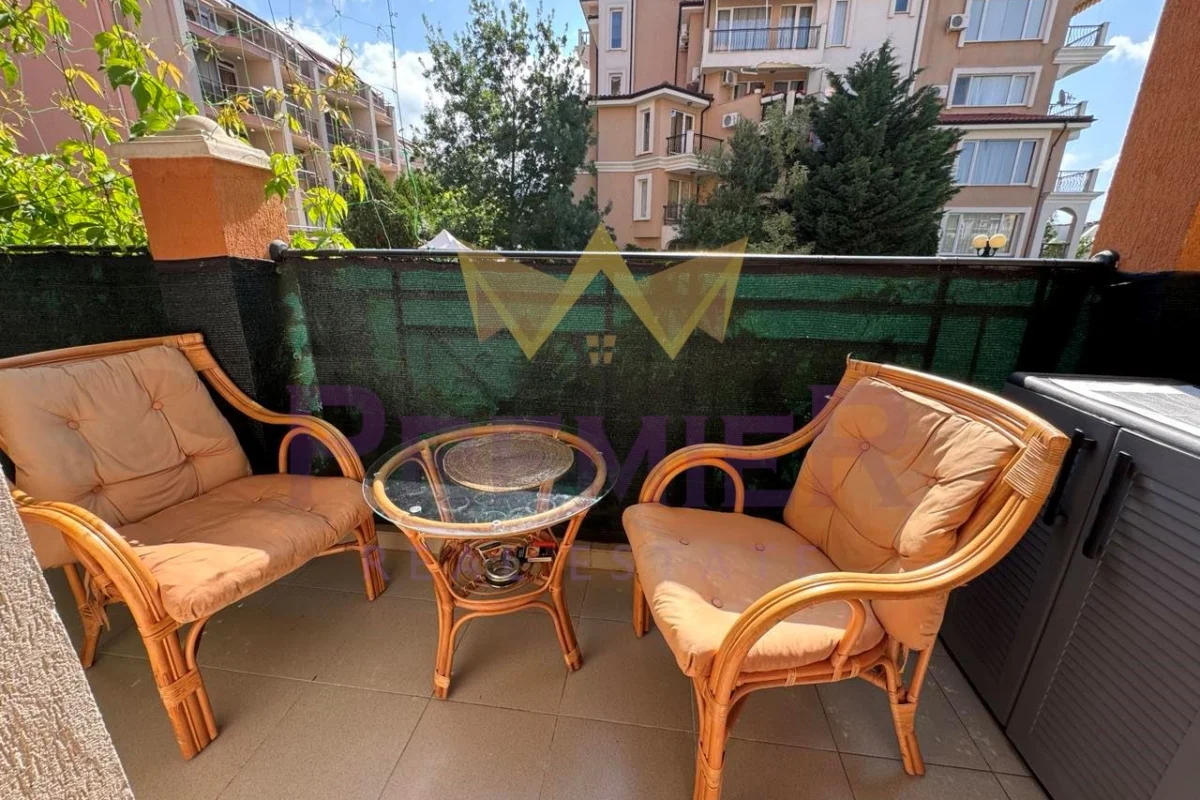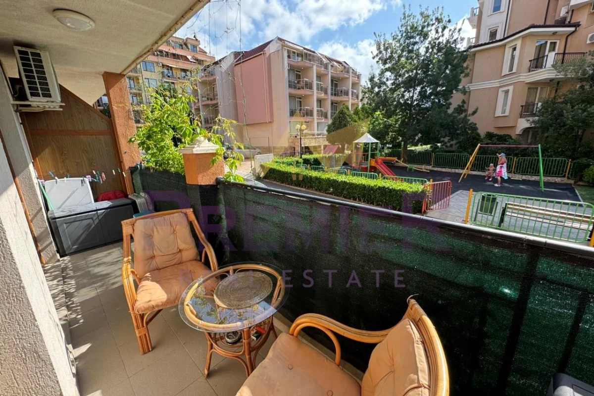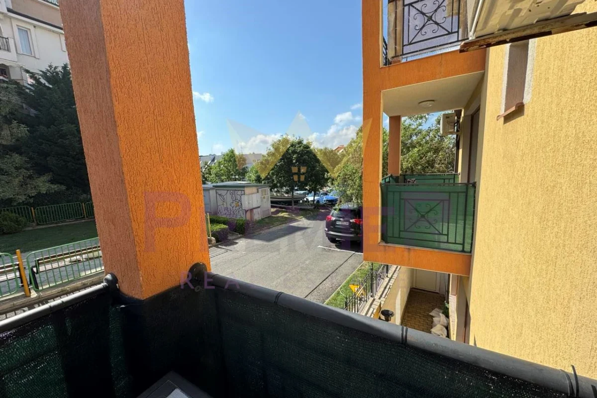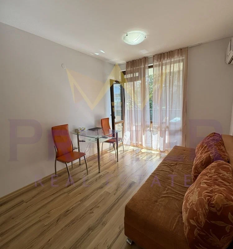 Имоти ПРЕМИЕР предлага двустаен апартамент на 200 метра до централен плаж и море. Оборудван с мебели и уреди необходими за целогодишно живеене. Апартаментът е чист и добре поддържан. Комплексът е от затворен тип, разполага с три басейна, детска площадка, барбекю, паркинг за собственици, охрана и кодиран вход. Районът е с добре изградена инфраструктура. На пешеходно разстояние има всичко необходимо за ежедневието: училище Мистрал 400 метра, училище Макон 700 метра, супермаркети, аптеки, ресторанти, централния площад на града 700 метра, спирка на градския транспорт 300 метра. За повече информация позвънете на посочените телефони и цитирайте код на обявата № 358969.