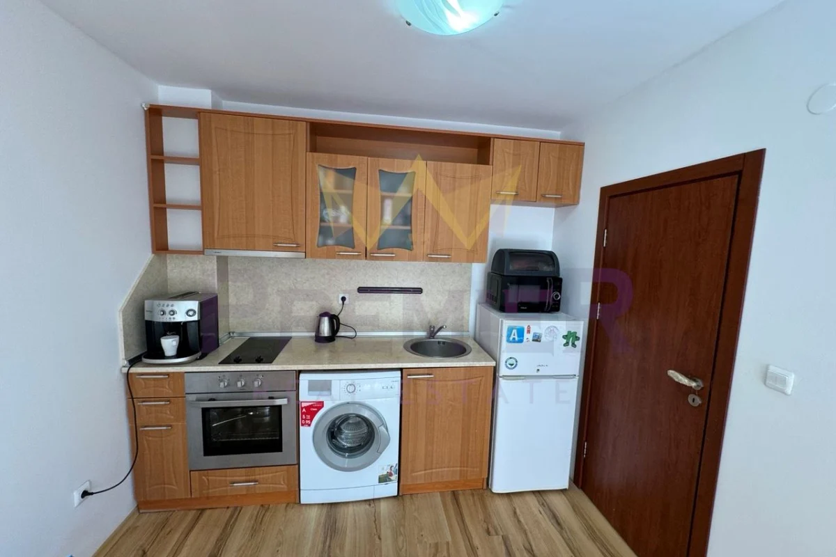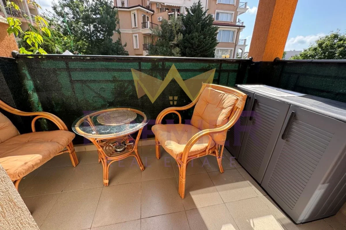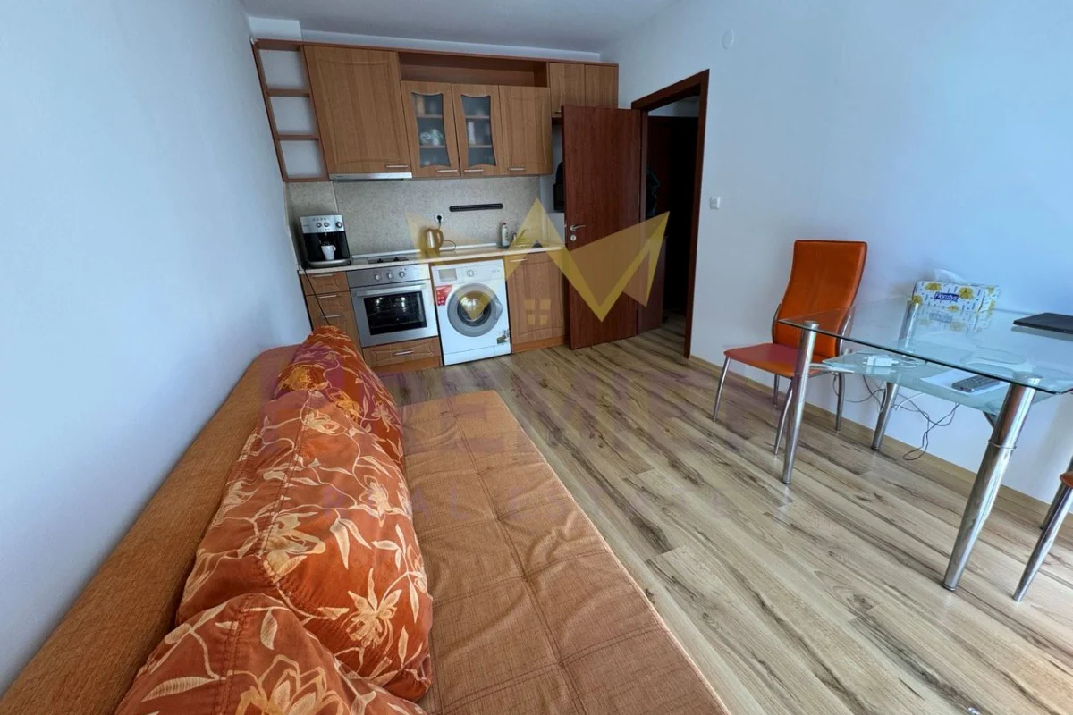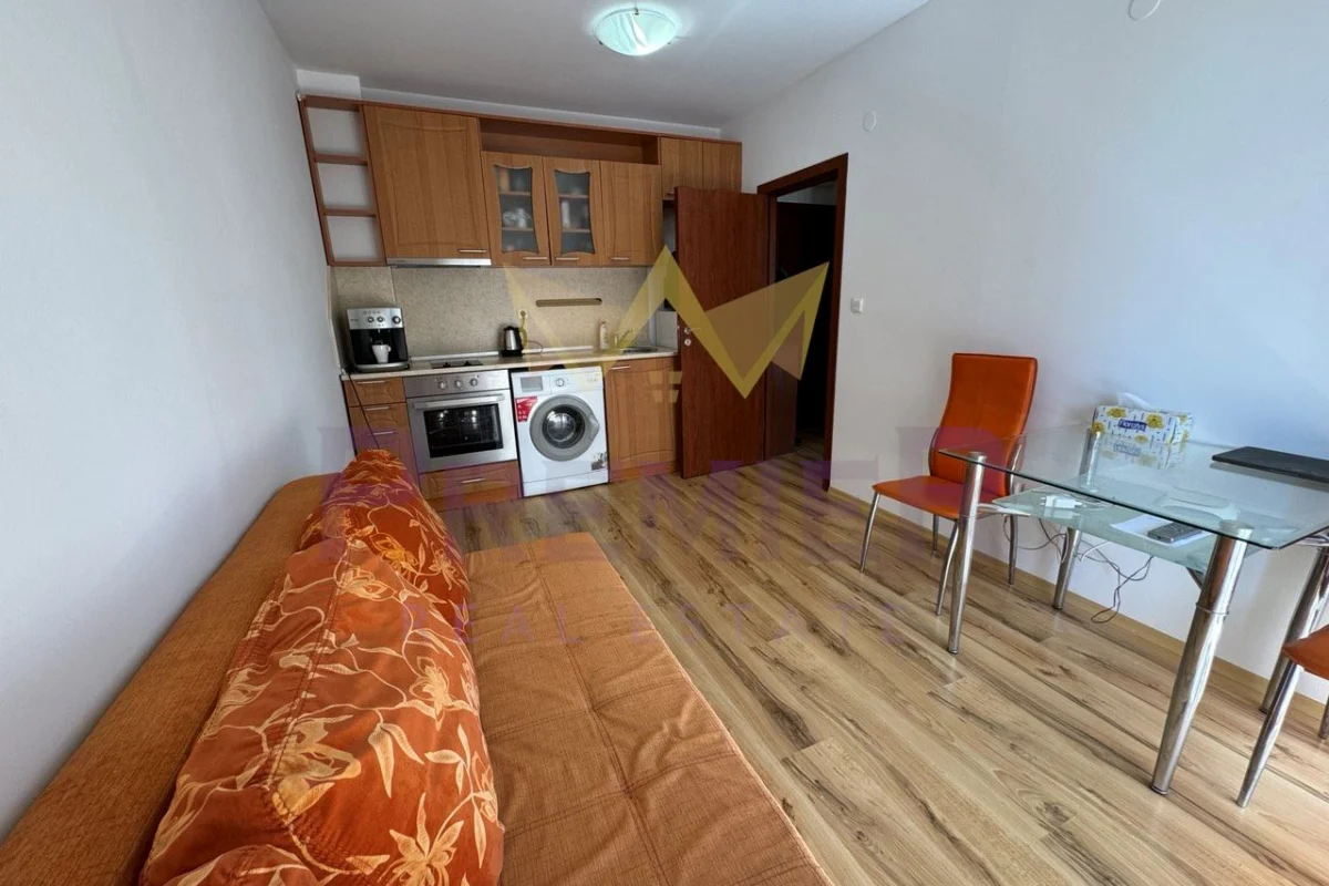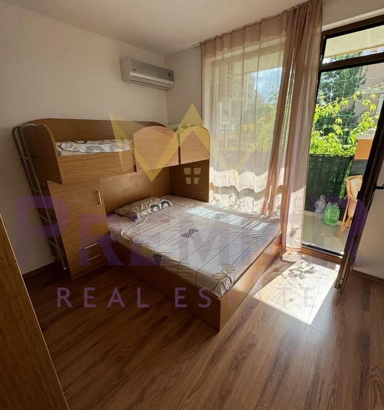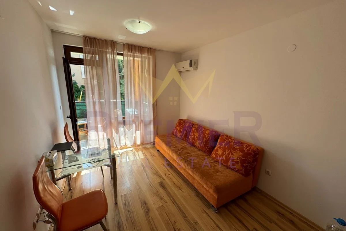 Имоти ПРЕМИЕР предлага двустаен апартамент на 200 метра до централен плаж и море. Оборудван с мебели и уреди необходими за целогодишно живеене. Апартаментът е чист и добре поддържан. Комплексът е от затворен тип, разполага с три басейна, детска площадка, барбекю, паркинг за собственици, охрана и кодиран вход. Районът е с добре изградена инфраструктура. На пешеходно разстояние има всичко необходимо за ежедневието: училище Мистрал 400 метра, училище Макон 700 метра, супермаркети, аптеки, ресторанти, централния площад на града 700 метра, спирка на градския транспорт 300 метра. За повече информация позвънете на посочените телефони и цитирайте код на обявата № 358969.