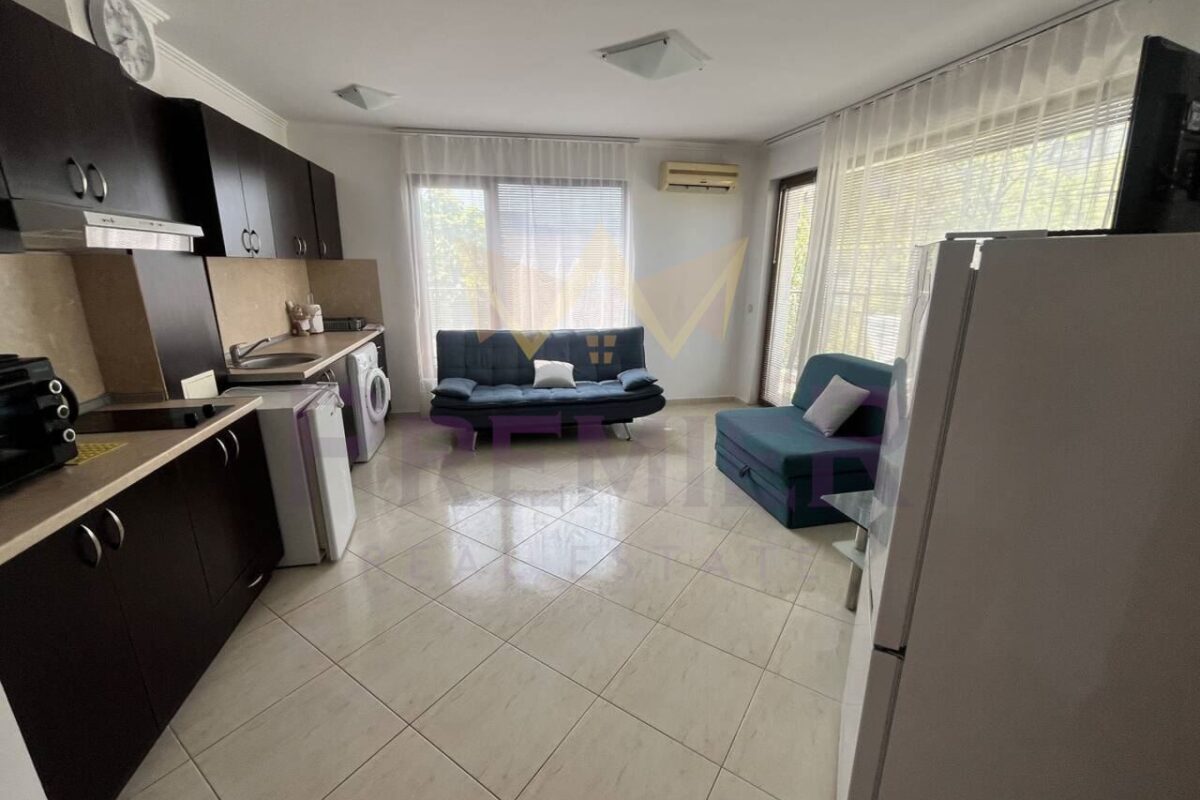 Имоти Премиер представя 2-стаен апартамент в комплекс „Антония“, Свети Влас. Жилището се намира на 3-ти етаж в тухлена сграда с обща площ 68 кв.м.