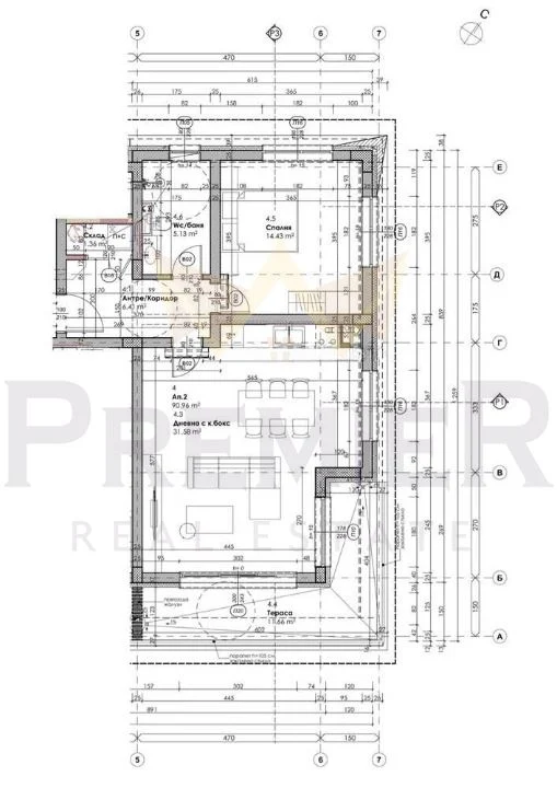 • Светла всекидневна с кухненски бокс и зона за трапезария, с излаз към балкона