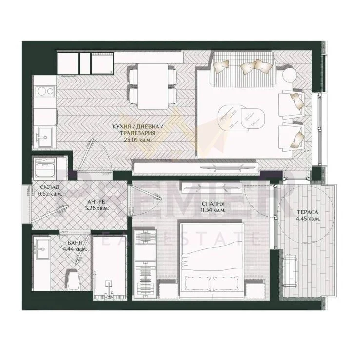 • Обща площ: 62 кв.м.