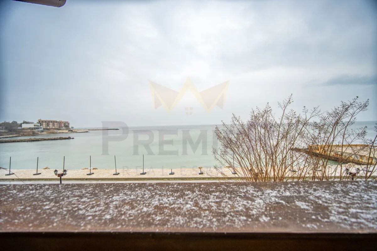 Имоти Премиер предлага на Вашето внимание просторен двустаен апартамент с впечатляваща морска панорама, разположен само на метри от самата крайбрежна алея.
