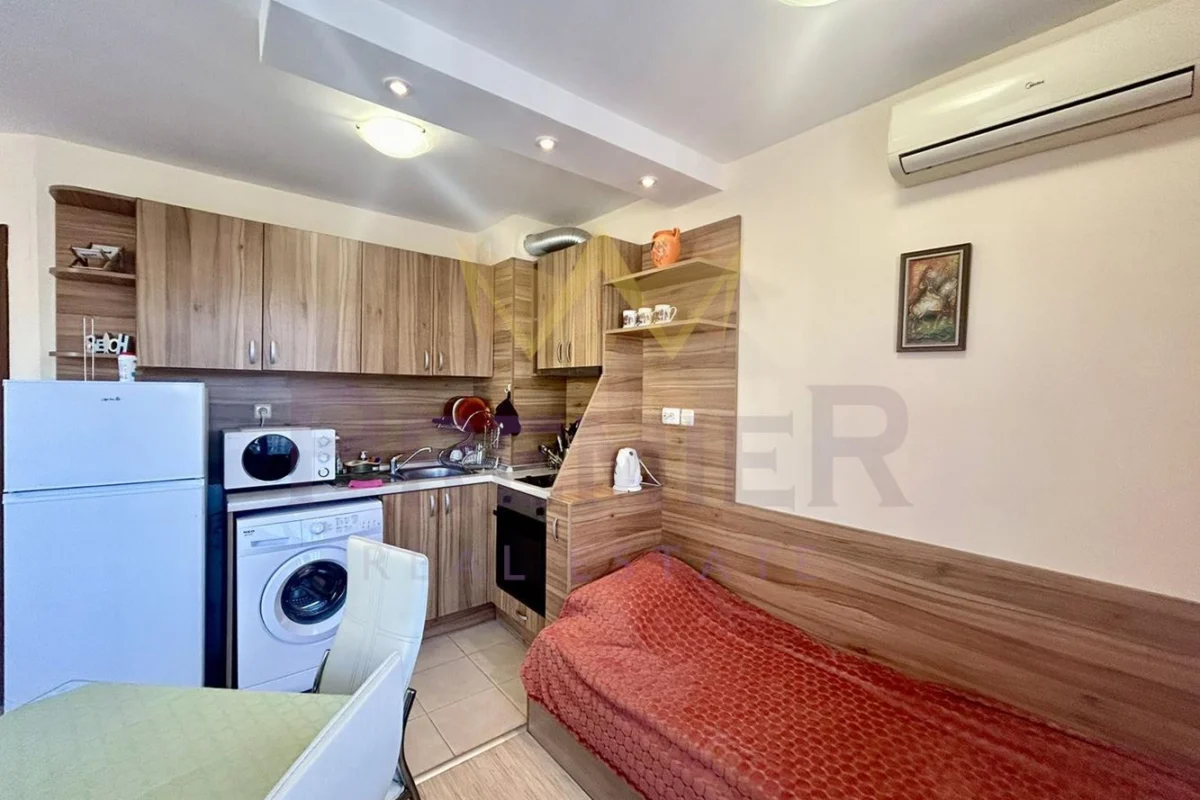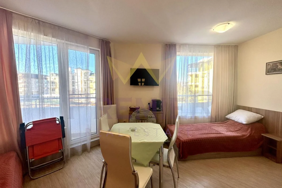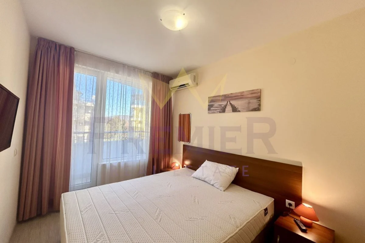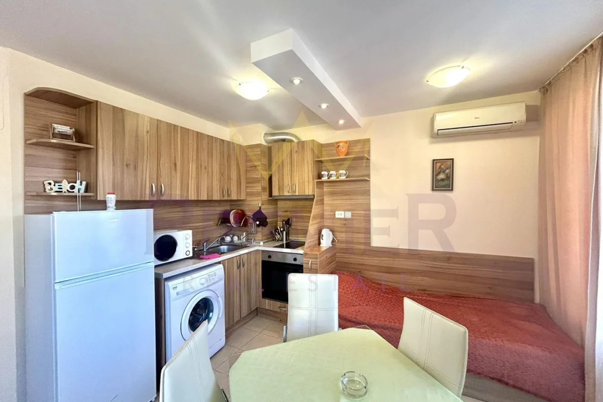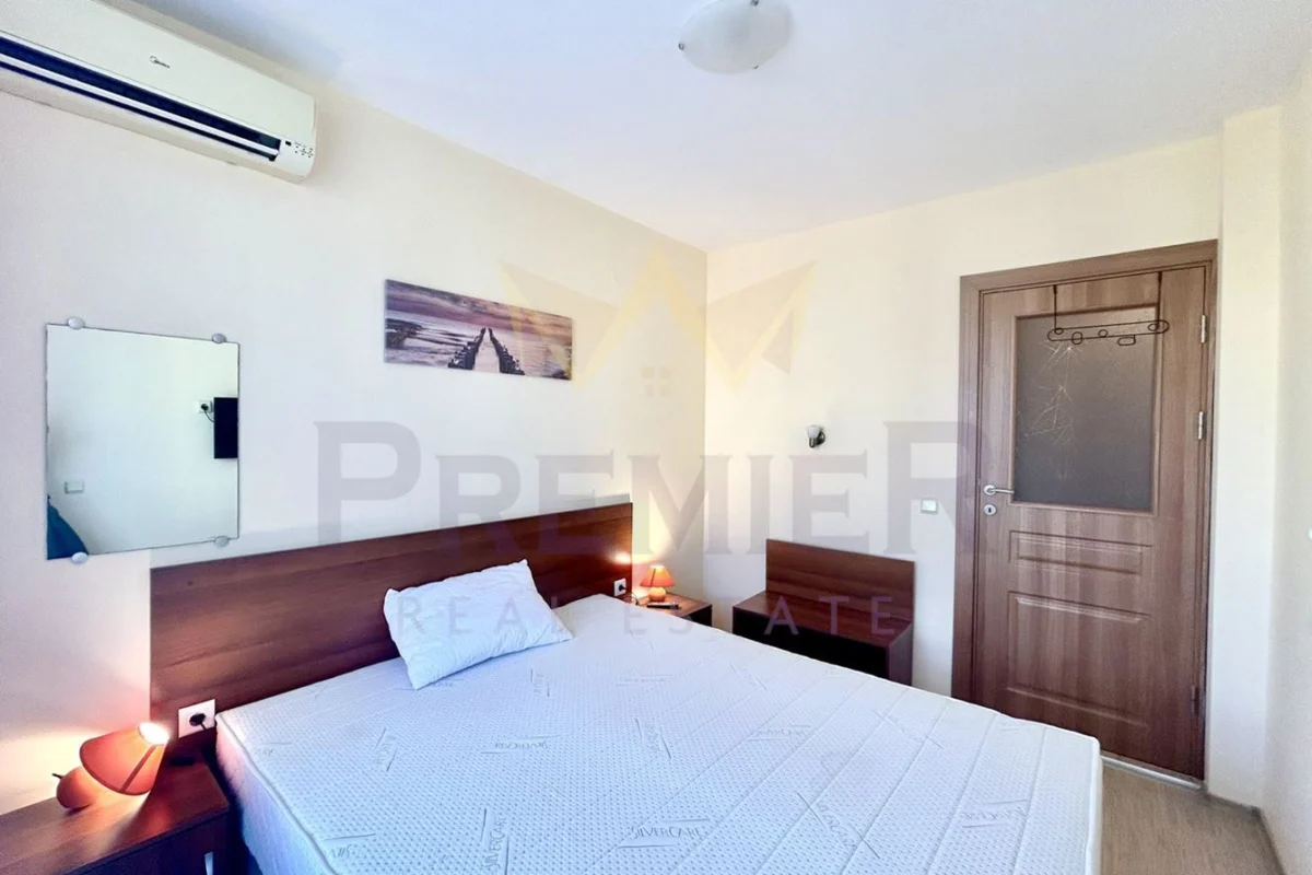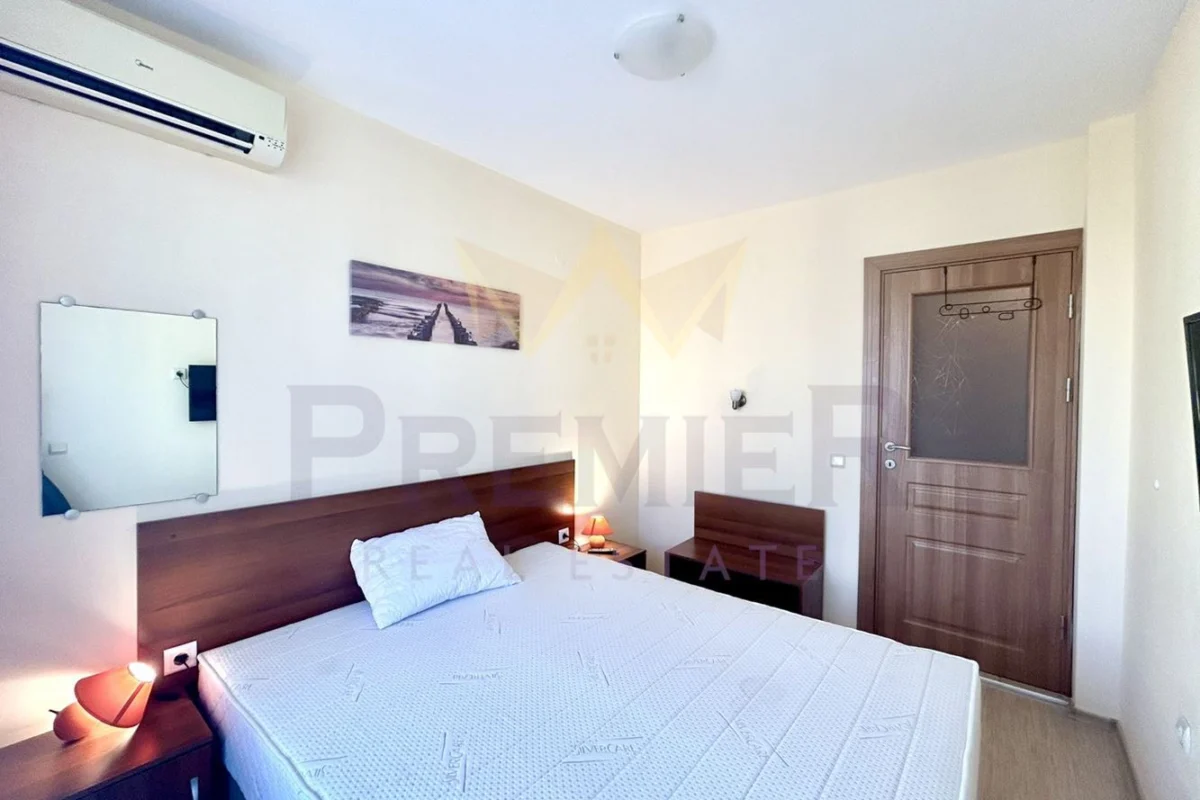 Имоти Премиер предлага за продажба двустаен апартамент в село Кранево с РЗП 50 кв.м намиращ се на втори етаж от четири етажна сграда тип затворен комплекс с басейн и фитнес .Жилището се състой от дневен тракт с кухня, с две единични легла, спалня, входно антре, килер, общ санитарен възел и две тераси .Апартамента се намира на 100 метра от плажа .