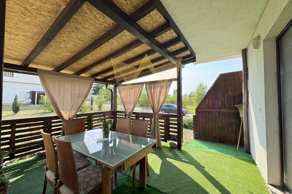 Апартаментът е на приземен етаж със собствена веранда. Комлексът разполага с басейн за общо ползване.