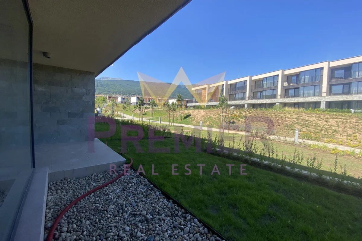 Апартаментът е разположен в престижният комплекс „Морени“ с отлична локация на метри от Ринг Мол и Икеа. Комплекса е затворен тип с най-високо ниво на изпълнение и качество на вложените материали: окачена комбинирана фасада, луксозни общи части, асансьори KONE, домофона система с видео наблюдение и смарт функции, високи тавани, и френски прозорци. Апартаментът е разположен на партерен етаж от 3 с югозападно изложение. В площ от 76 кв. м. са разпределени функционално входно антре, просторна дневна с кухненски бокс около 30 кв.м., не преходна спалня, баня с тоалетна, покрита тераса и двор с панорамна гледка към планината. За удобно достъпа към дворната тераса е както от дневната, така и от спалнята. Отоплението е предвидено на Газ с инсталиран газов котел и изградени комуникации за климатична система. Към имота има възможност за закупуване на подземно паркомясто.