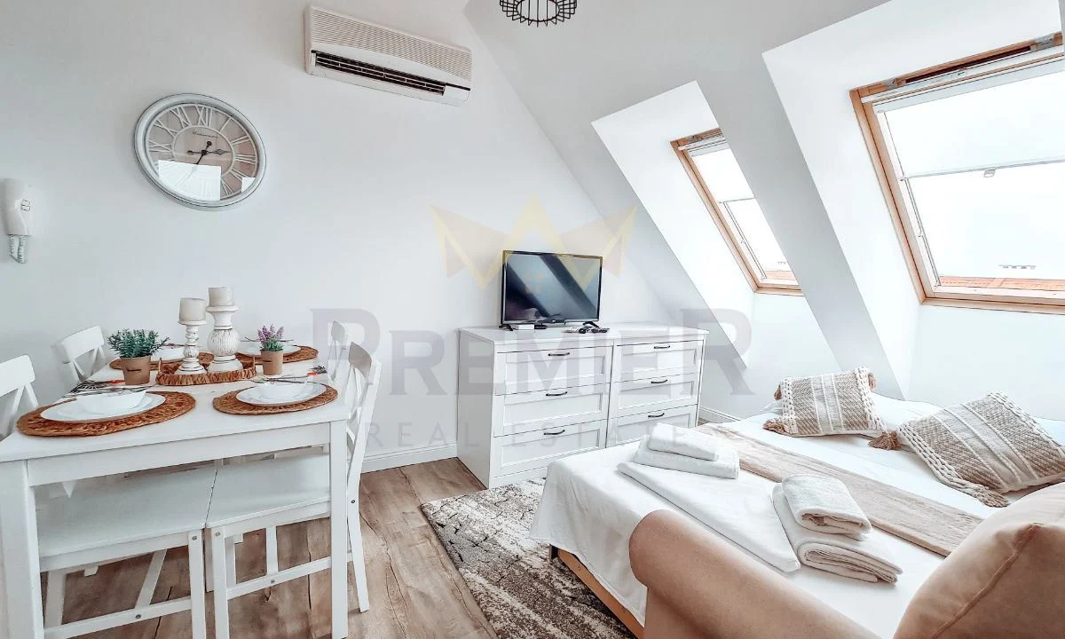 и се състои от дневен тракт, спалня, баня и тоалет, голяма панорамна тераса и две паркоместа.