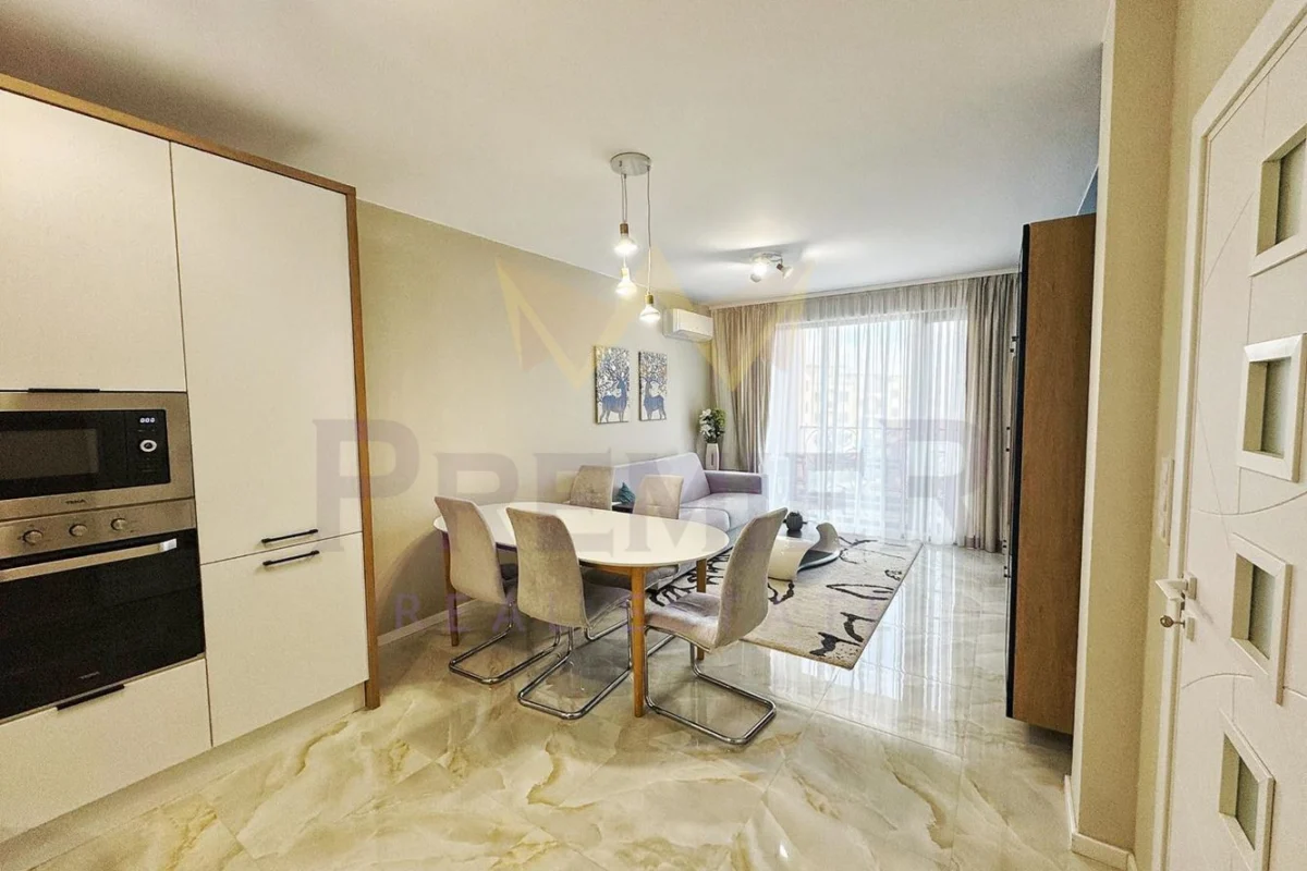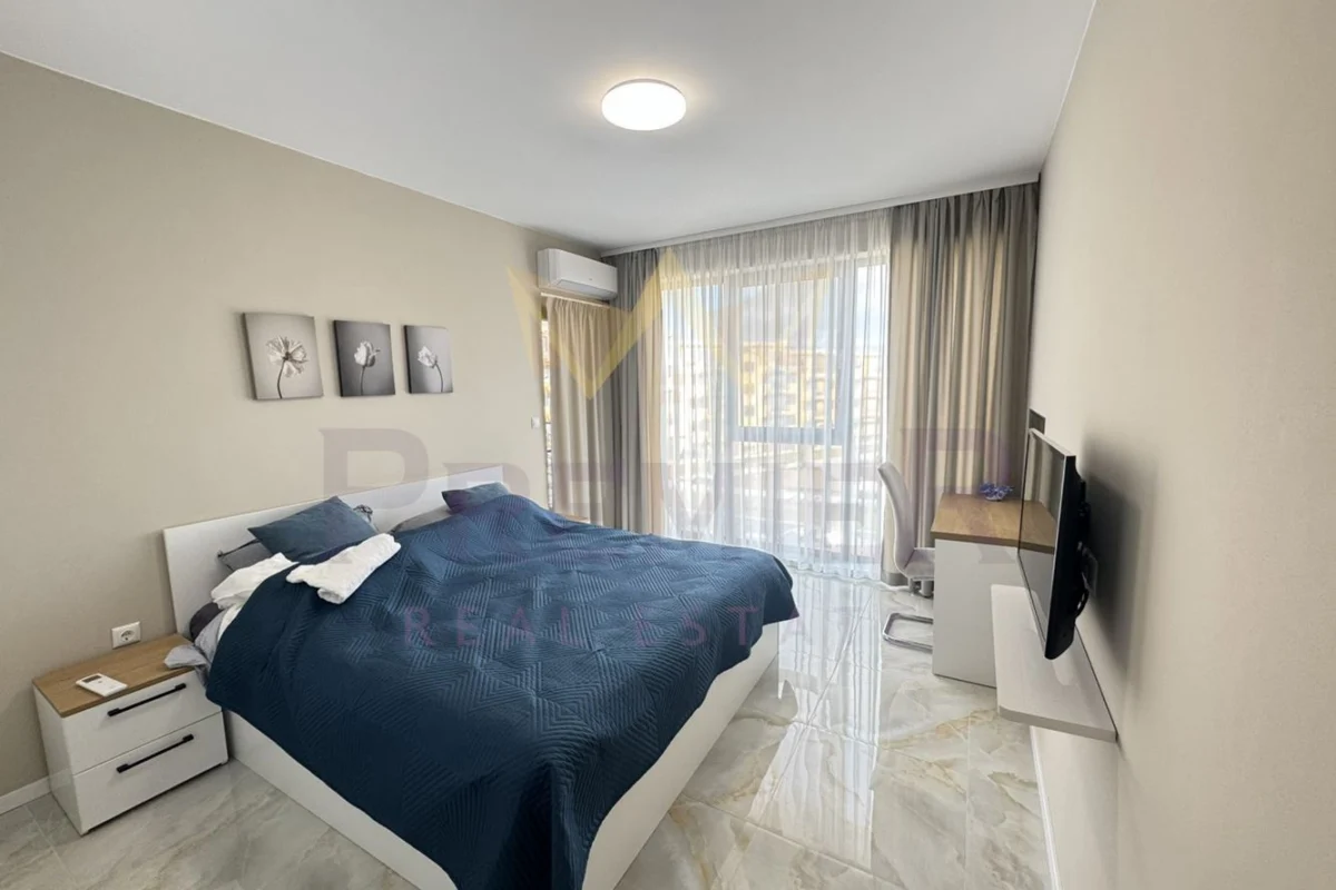 Имоти Премиер има удоволствието да Ви представи за продажба двустаен апартамент в непосредствена близост до к.к.Св.Св.Константин и Елена и Еко Парка на града. Жилището е ситуирано на 2-ри етаж в нов изграден комплекс с 24 часа наблюдение и жива охрана. За изграждането на комплекса са предвидени материали от най – висок клас, съобразени с последните технологични тенденции. Имотът има следното функционално разпределение: входно антре, южна слънчева дневна с кухненска част – функционална спалня, входно антре, баня с тоалет, тераса с излаз от двете стаи.