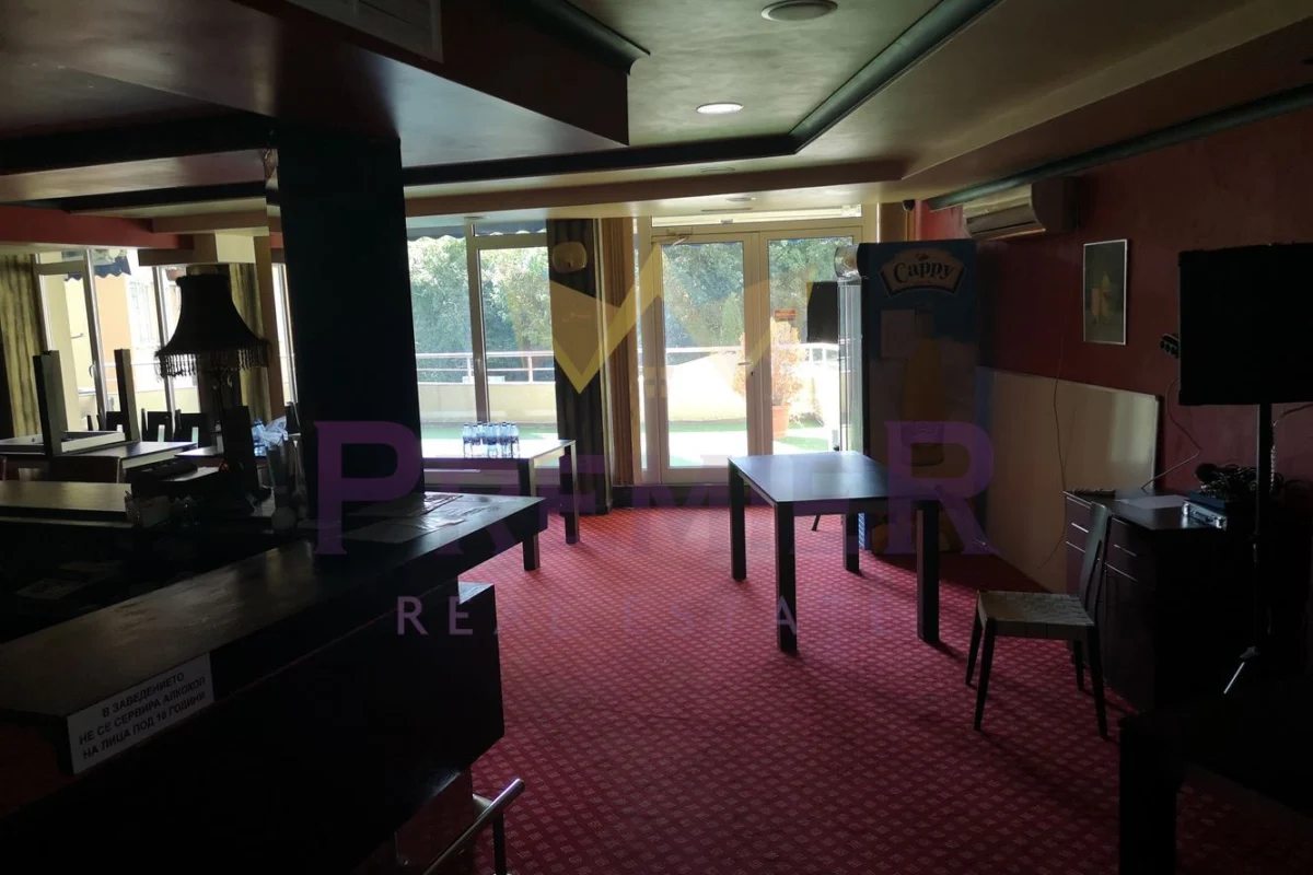 ИМОТИ ПРЕМИЕР ви предлага за продажба недвижим имот със статут на лоби бар. Обектът се намира в апартаментен комплекс в к.к.Златни пясъци. Етажът се води партерен, но реално се явява първи висок етаж над нивото на терена, чистата квадратурата е 170.4 м2. Към нея има 1.416% идеални части от общите чати на сградата или 15% от чистата площ. Има голяма тераса и изглед към басейна. Обектът се продава с идеята да не се ползва като заведение, а като жилищна площ или офис.