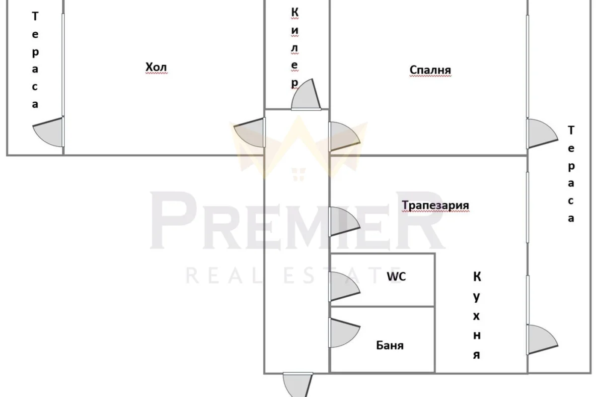 Състои се от дневна, спалня, кухненски бокс и зона за хранене,баня, туалетна, килер, маза.