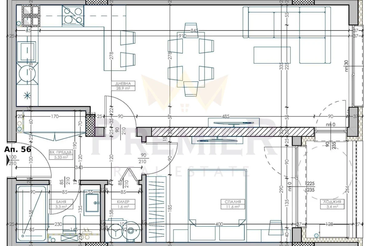 • Светла и просторна дневна с кухненски бокс, предлагаща уютно място за отдих и събирания