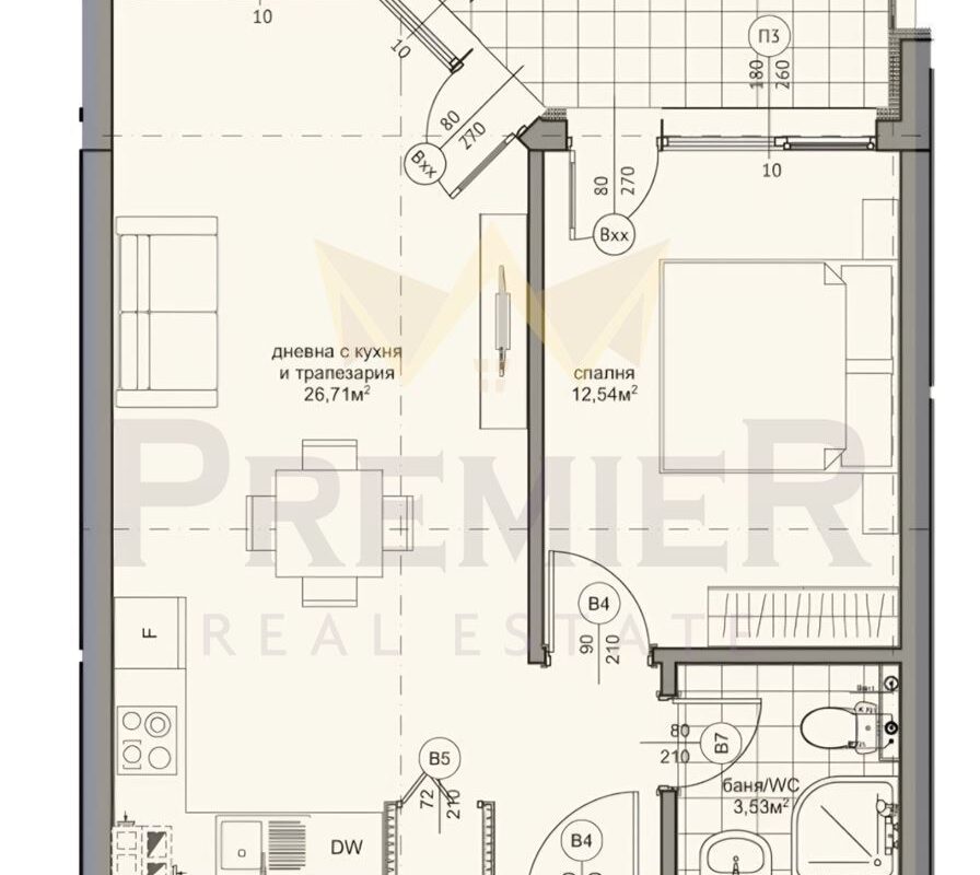 - Просторна дневна – 27 кв.м, с правилни форми и излаз към тераса;