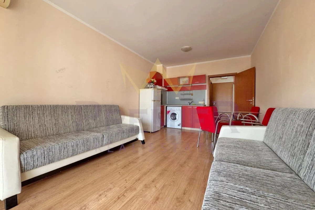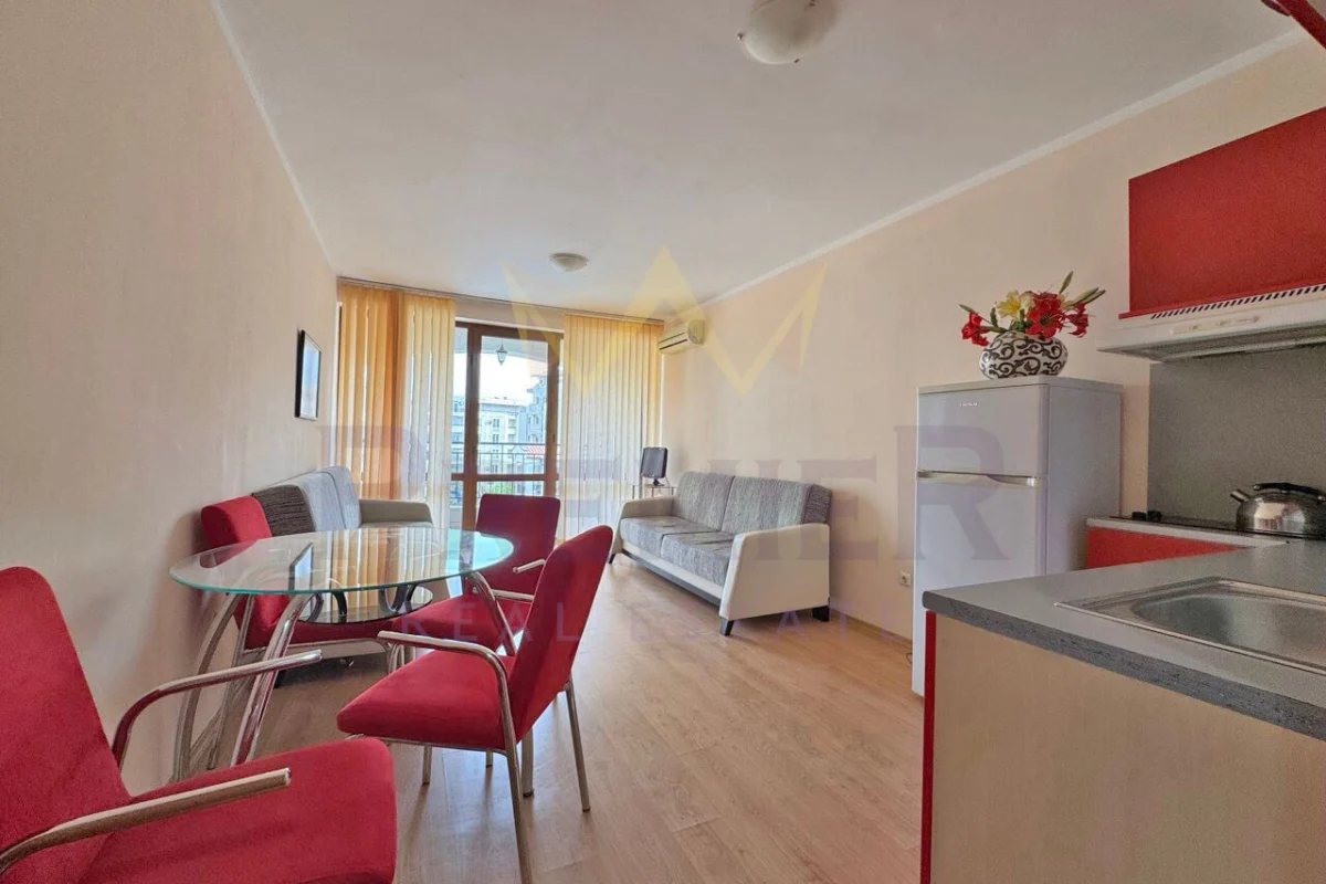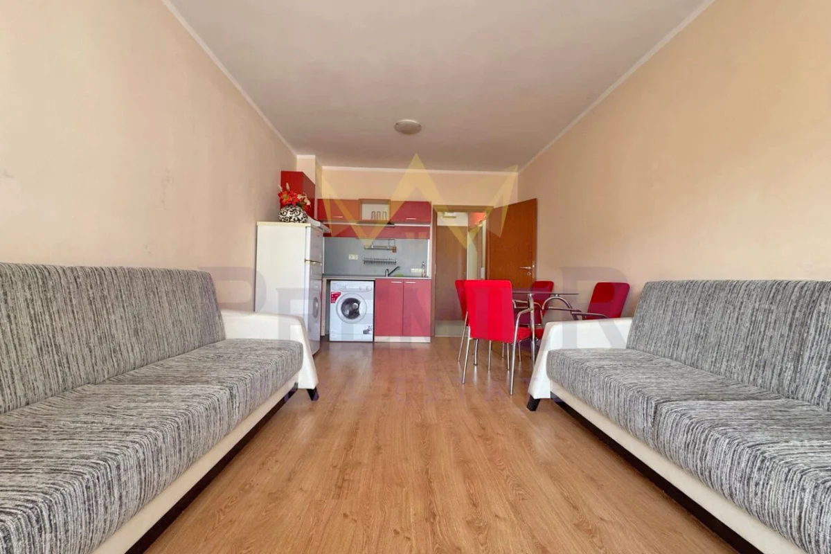 Имоти Премиер и представя светъл и комфортен едностаен апартамент с гледка към басейн в к.к. Слънчев бряг, обл. Бургас