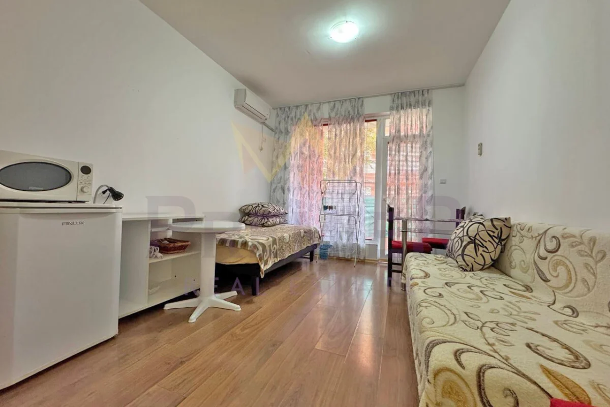 Имоти Премиер ви представя компактен едностаен апартамент с отлична локация в к.к. Слънчев бряг, обл. Бургас.