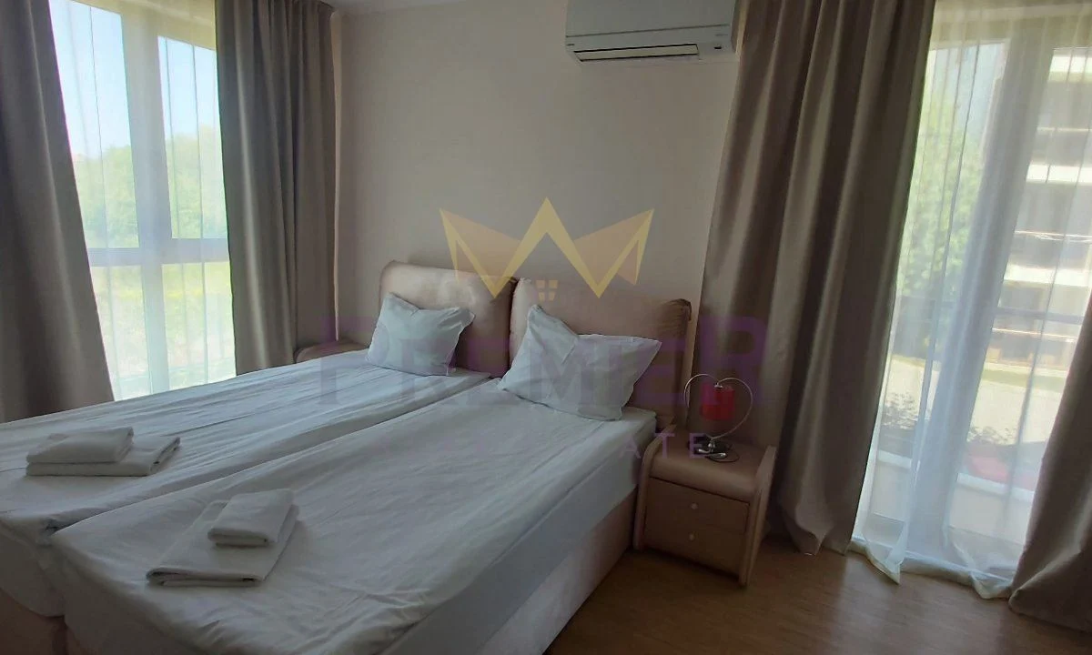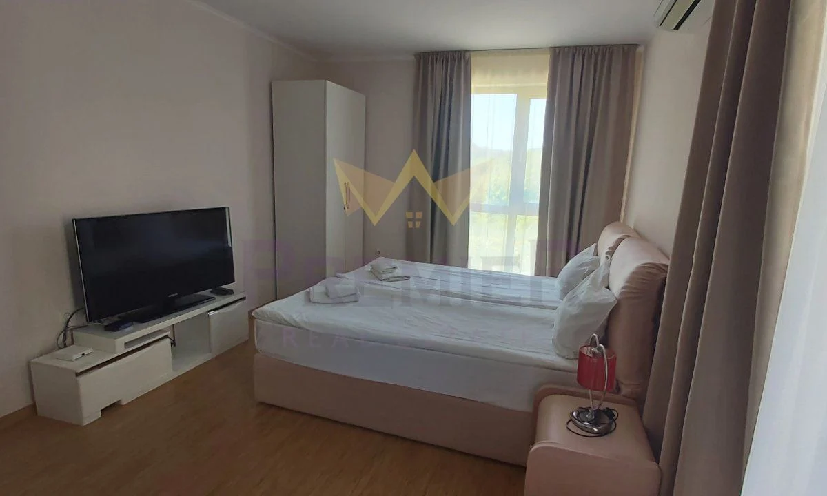 ПРОМОЦИОНАЛНИ ЦЕНИ ДО ВЕЛИКДЕН!!! ТАМ КЪДЕТО ПЛАНИНАТА ЦЕЛУВА МОРЕТО. ИМОТИ ПРЕМИЕР представя на Вашето внимание обзаведен едностаен апартамент, тип студио на брега на морето. Намира се в комплекс от затворен тип, в който са налични два ресторанта, СПА център, фитнес, басейн, детски басейн, детски кът и други екстри, които да задоволят и най-взискателния клиент. Жилището се състои от коридор, голяма стая разделена на кътове – спалня и кухненска част, балкон и баня с тоалетна. Закупувайки си жилище в комплекса, Вие може да се насладите на романтика, съчетана с морска почивка, връщане към природата и на лукса между планината и морето. Налични са и двустайни, тристайни и четиристайни апартаменти.