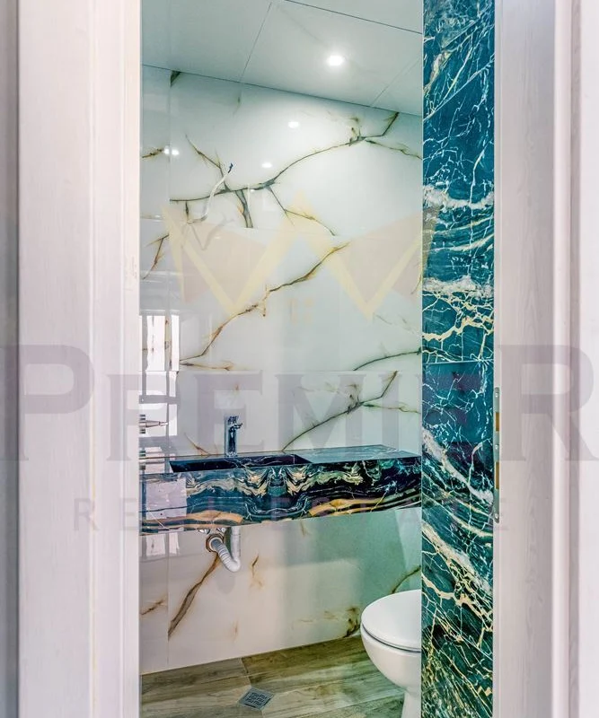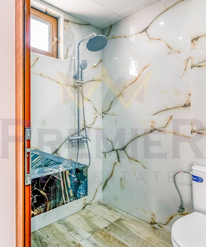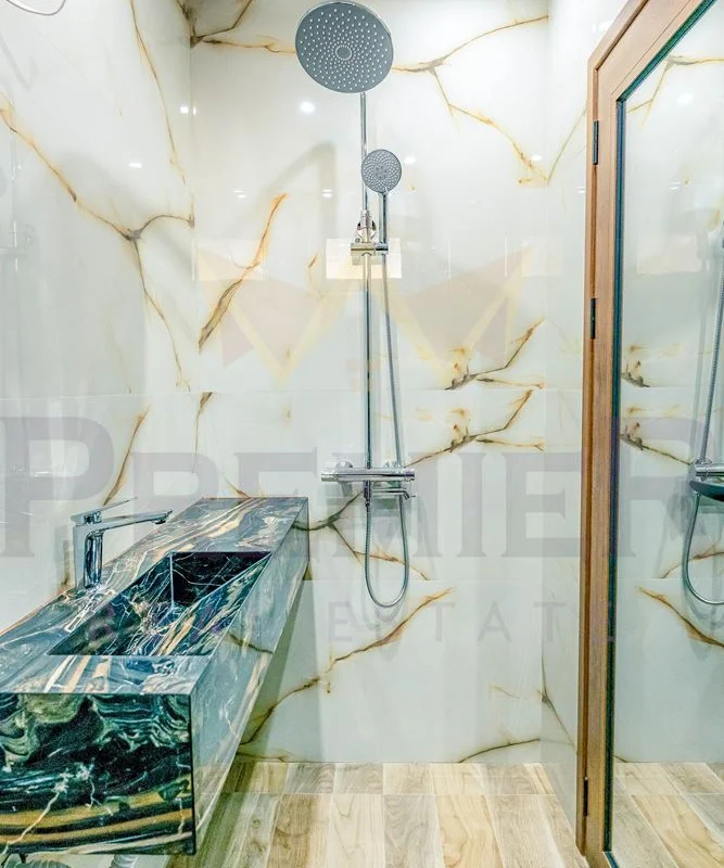 - Второ ниво: Просторна всекидневна с излаз към тераса, която разкрива впечатляващи панорамни гледки към околната природа и е подчертана с елегантни стъклени парапети. На същия етаж са разположени баня и тоалетна за гости, както и три спални със самостоятелни бани и тоалетни – перфектно съчетание на комфорт и уединение.