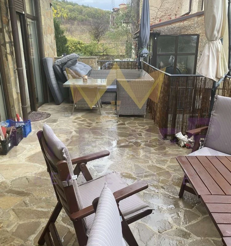 От дневната има излаз към веранда от 30 кв.м. с гледка към Стара планина и морето – идеално място за отдих и хранене на открито.