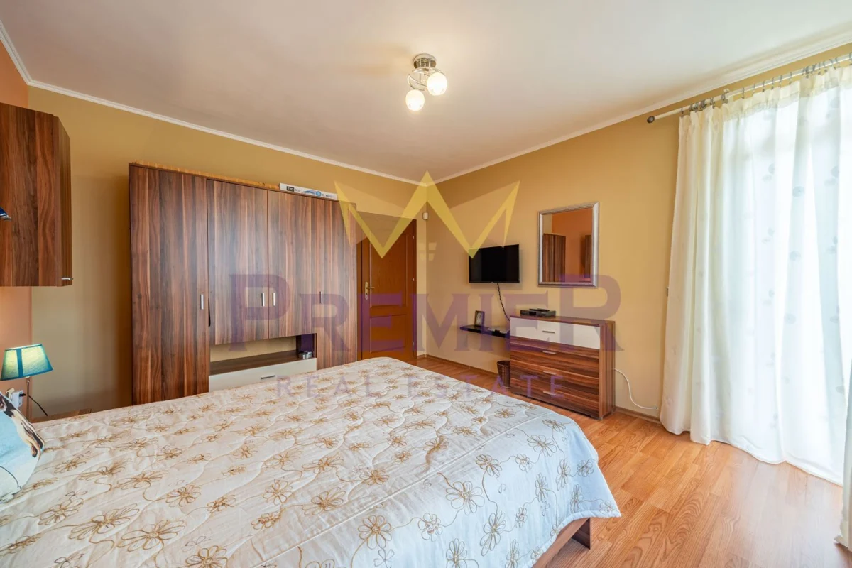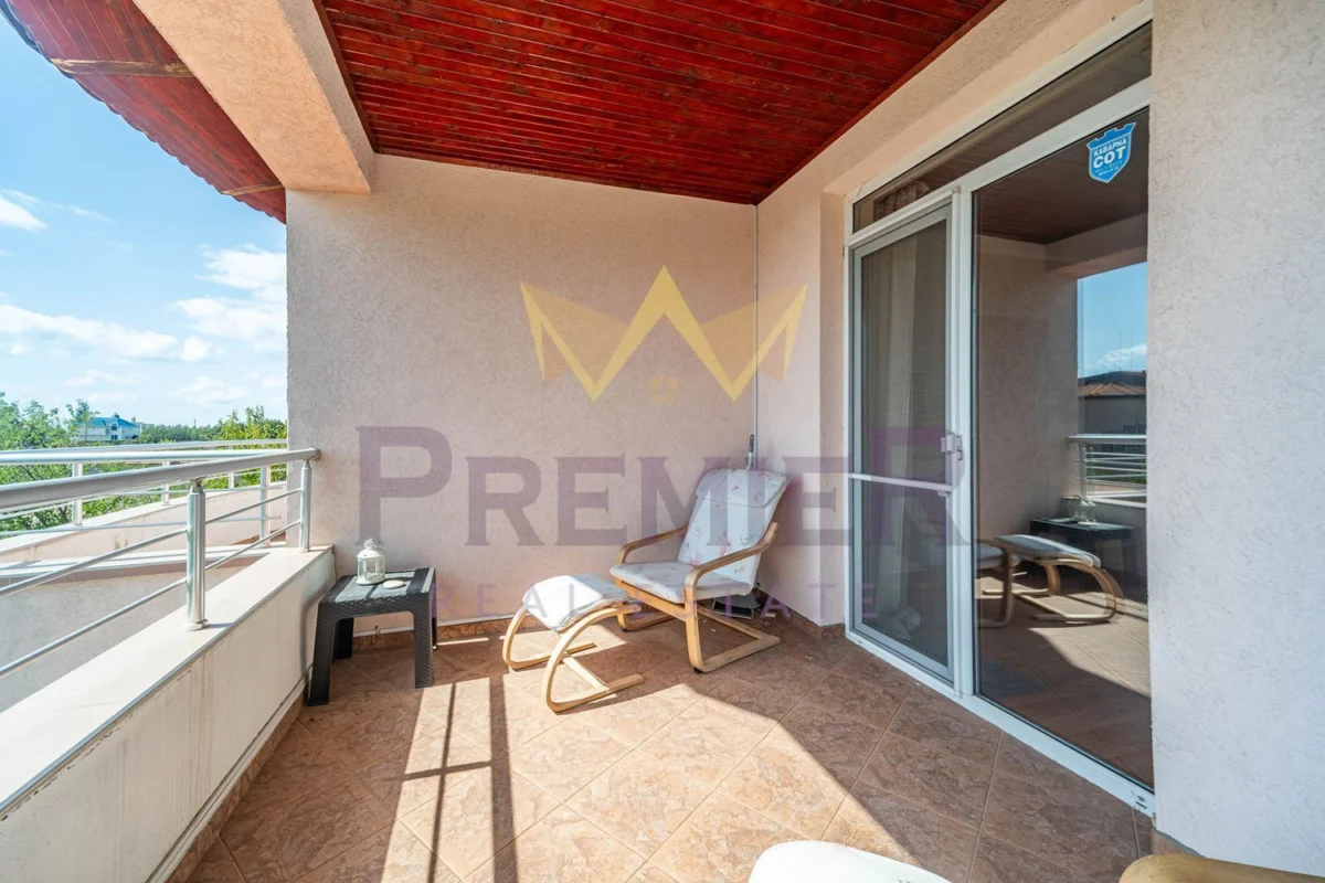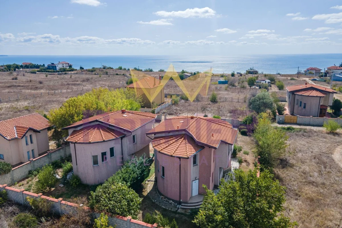 Втори етаж: санитарен възел, три спални, едната от които със самостоятелен санитарен възел, две тераси, от които се открива гледка море.