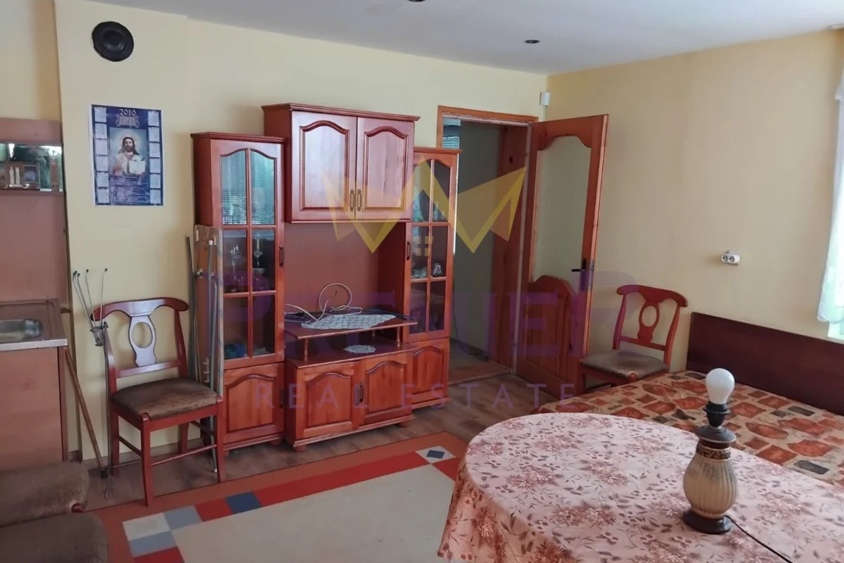 - Разпределение: две стаи, баня и тоалетна, маза, два входа, допълнителна стая с външно стълбище на втория етаж с възможност за баня и тоалет.